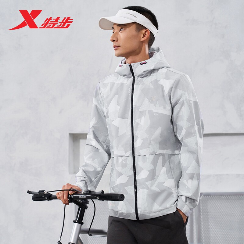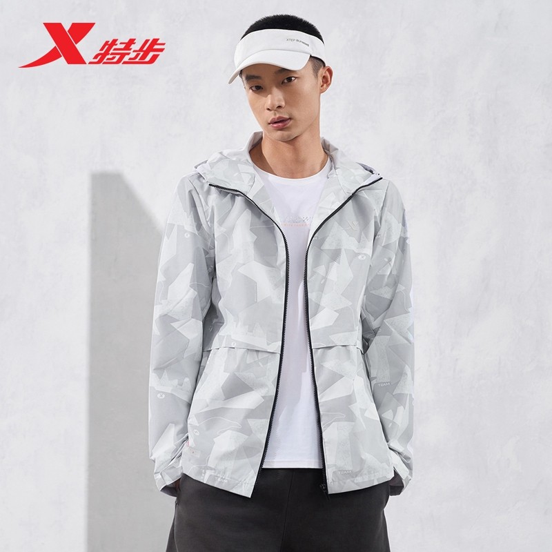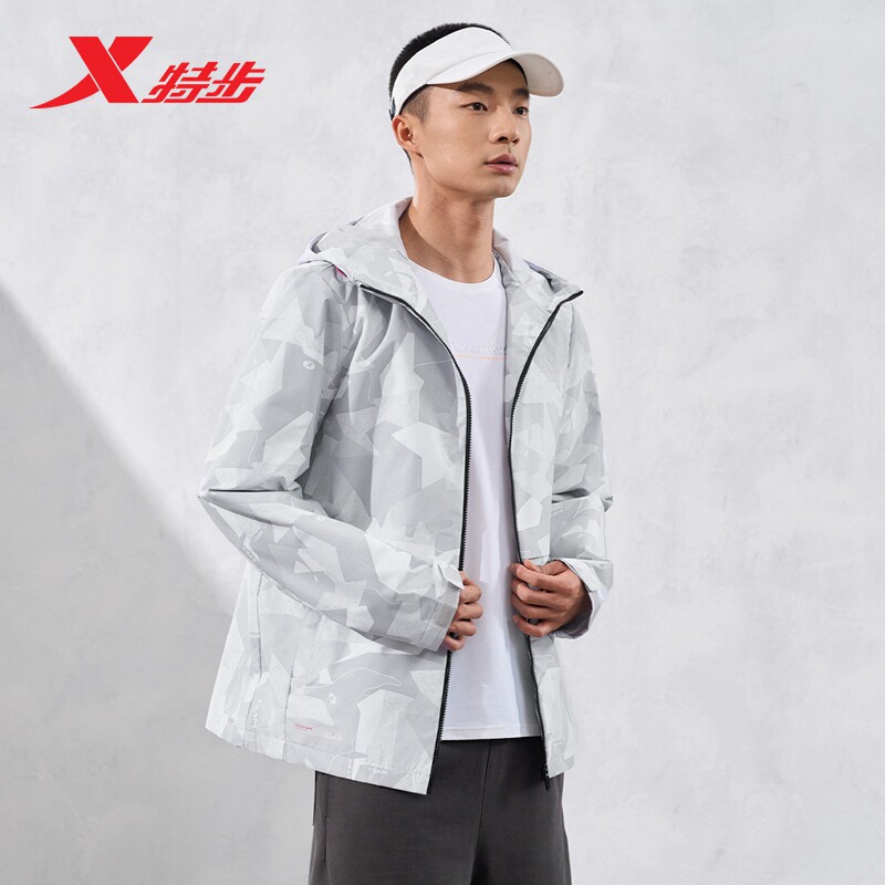 特步运动风衣男2026春季新款训练健身梭织连帽外套976129160173