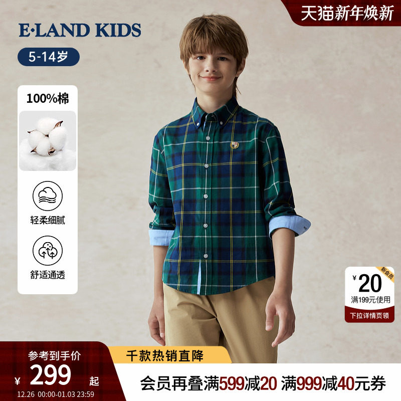 eland kids衣恋童装男童衬衫2025年秋季新品复古英伦格子长袖上衣