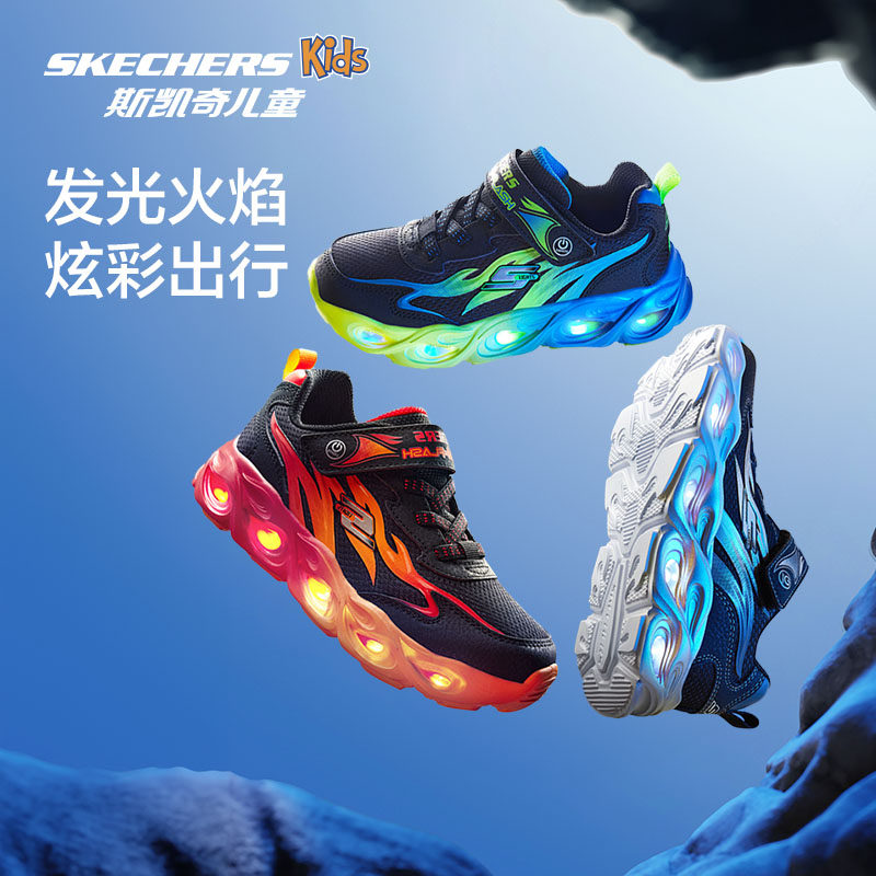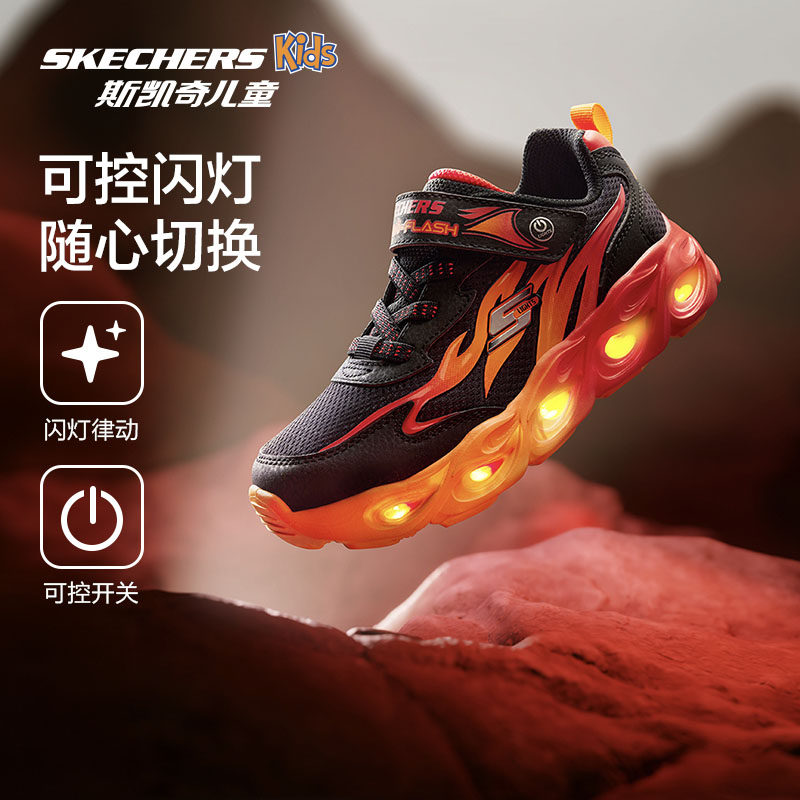 【新年礼物】斯凯奇儿童火焰闪灯鞋秋冬男童潮流运动鞋舒适跑步鞋