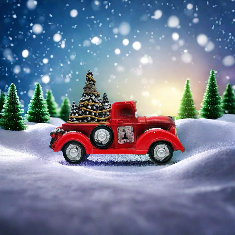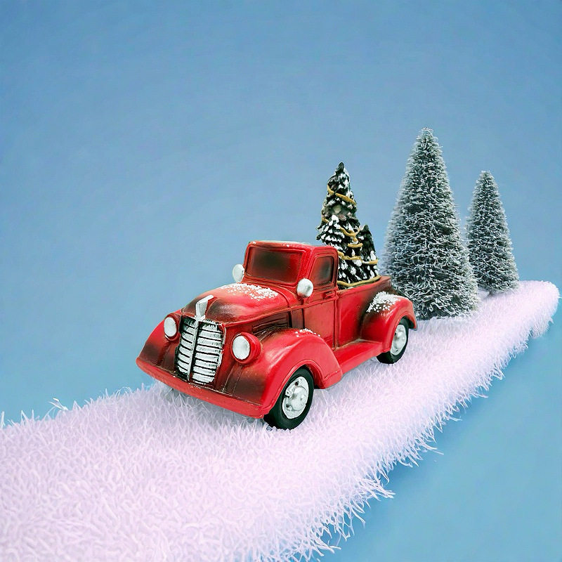 新品树脂摆件工艺品圣诞卡丁汽车红色拉圣诞树led灯闪烁装饰
