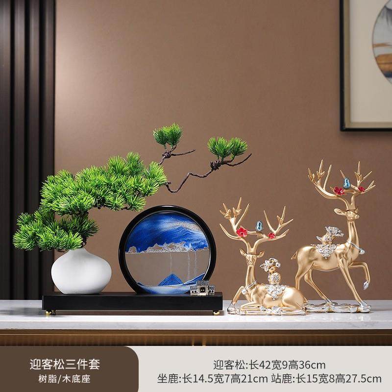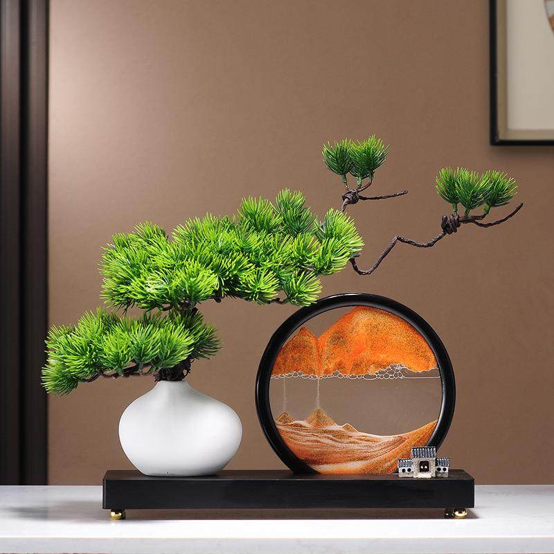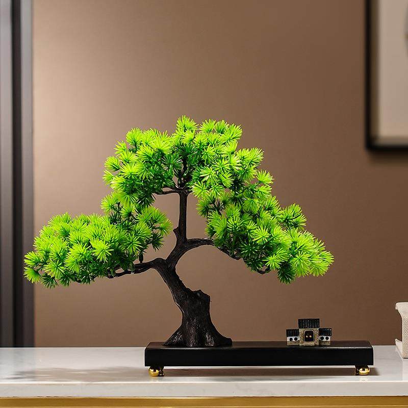 仿真绿植迎客松罗汉松盆景新中式客厅玄关茶室酒柜装饰品禅意摆件