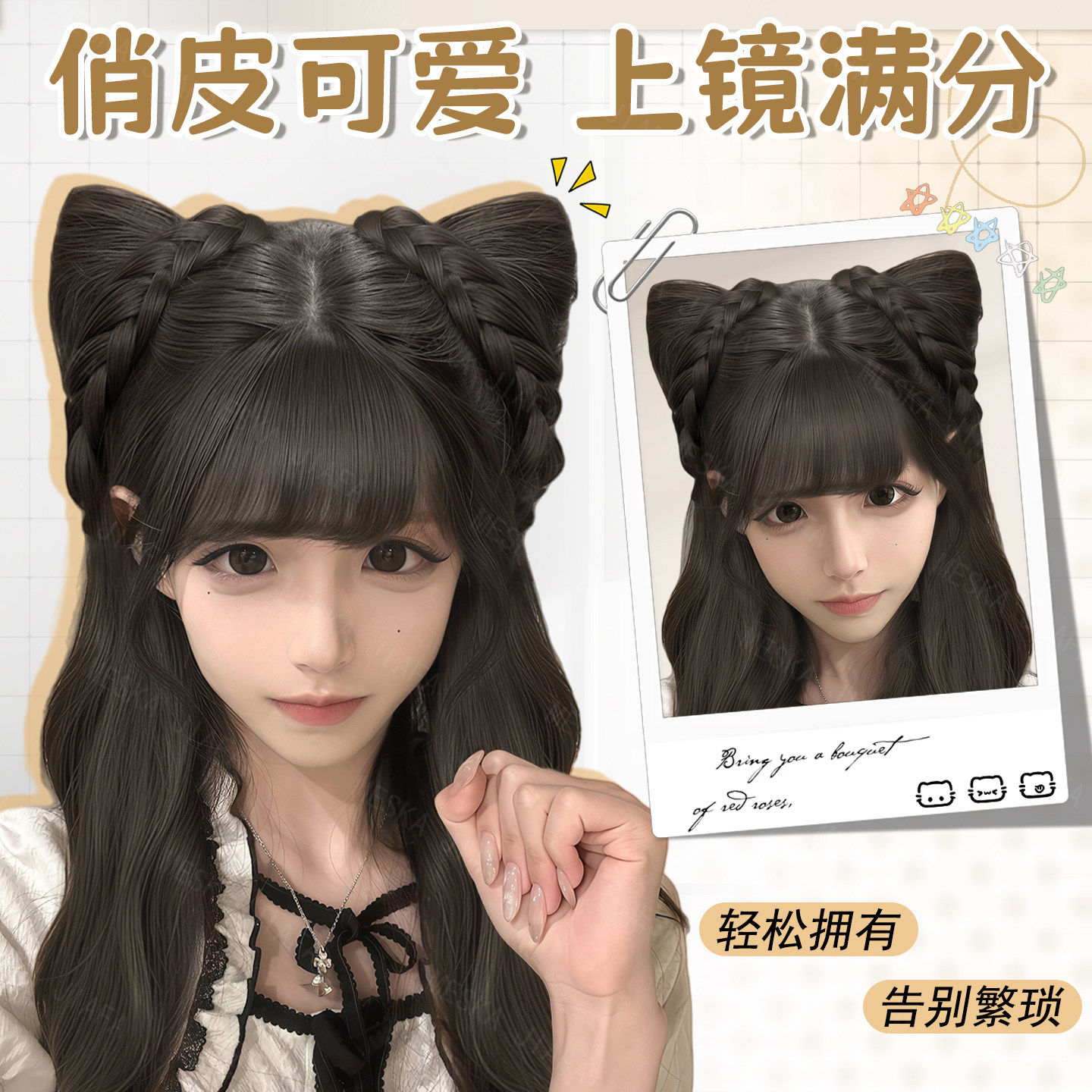 丸子头假发女可爱减龄猫耳朵双丸子花苞抓夹盘发神器仿真发假发包