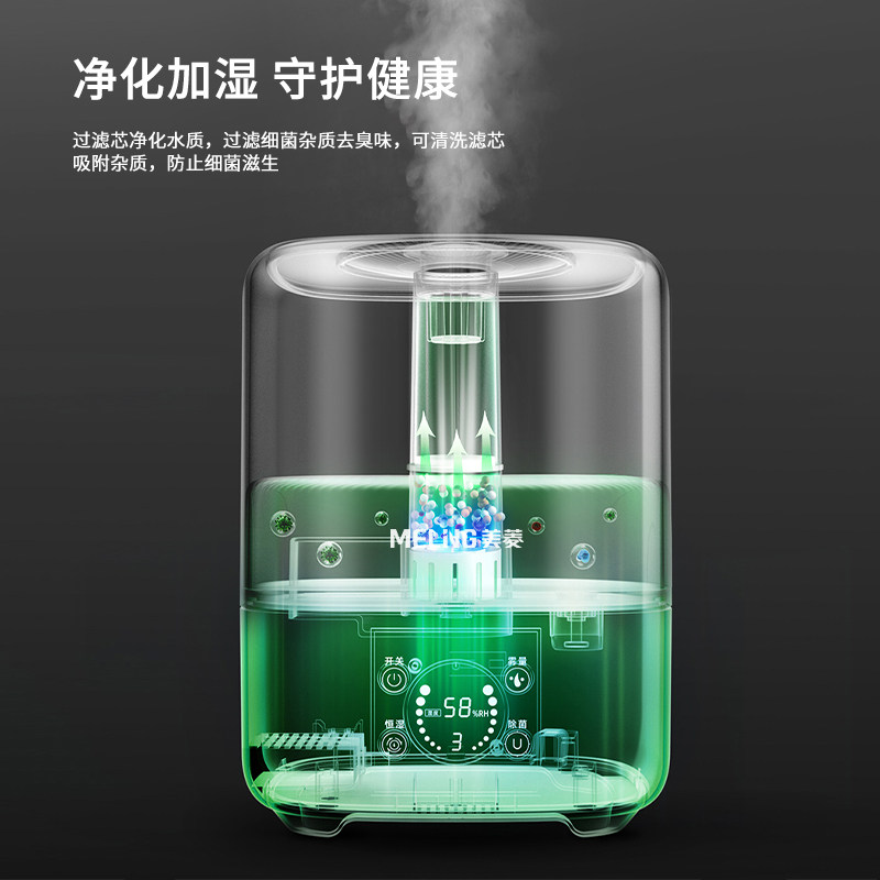 美菱加湿器家用静音卧室桌面空调孕妇婴儿空气除菌净化大喷雾容量