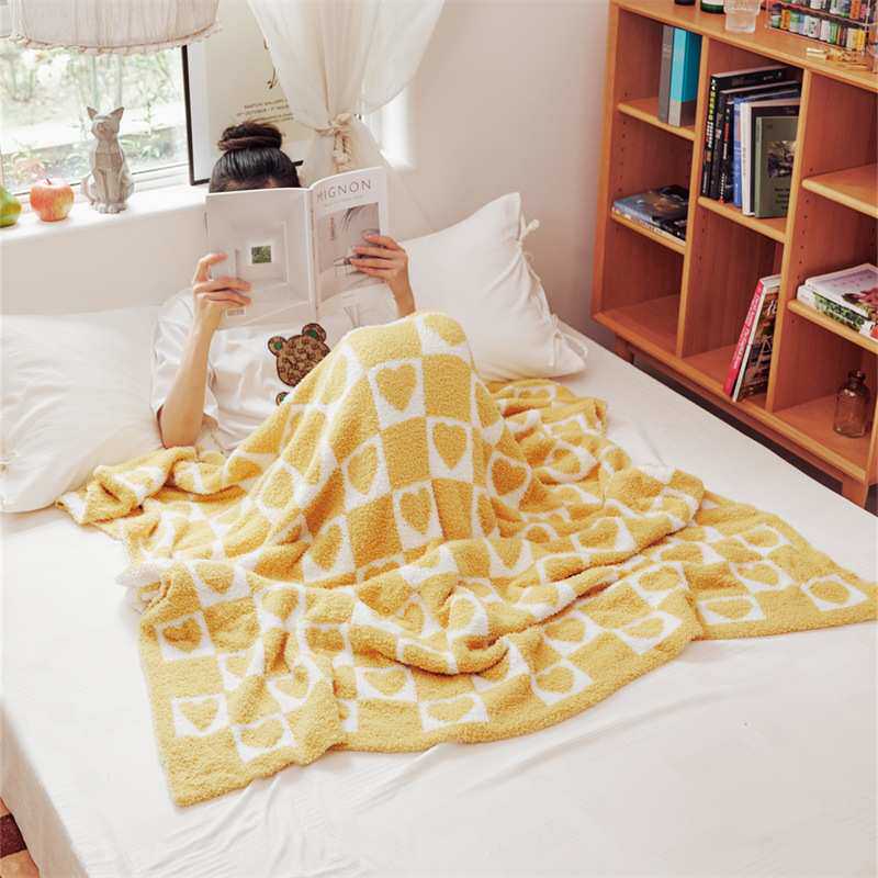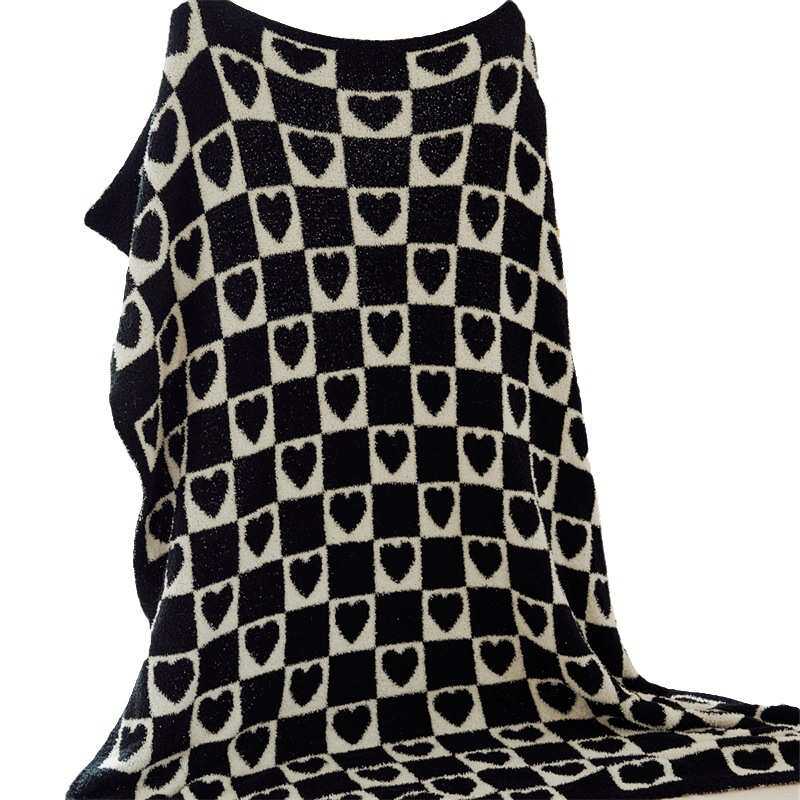 瑞景纺织超火的爱心大棋盘格半边绒针织线毯沙发毯桃心
