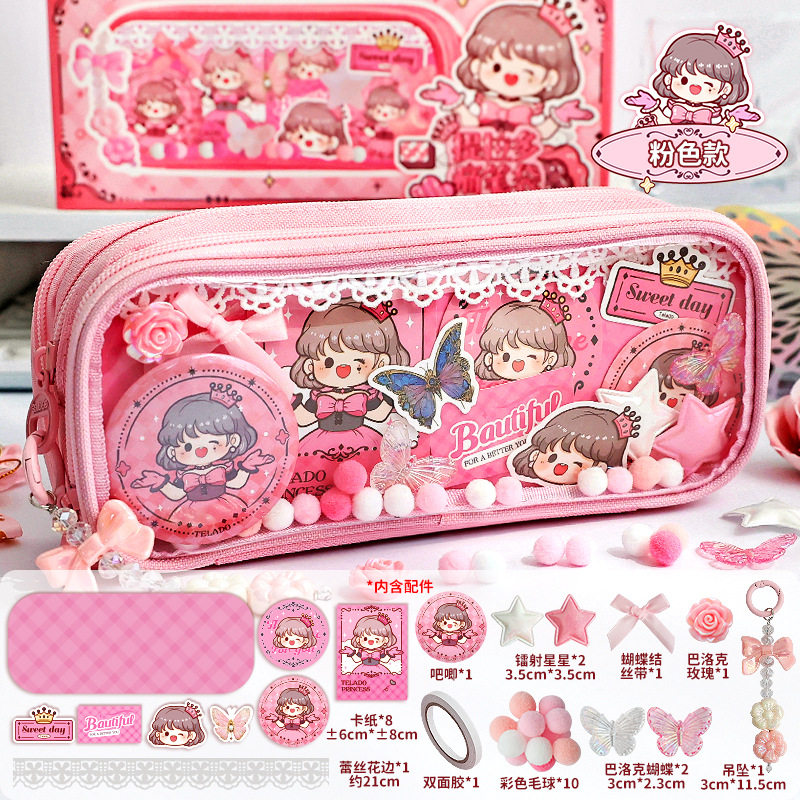 300张女孩贴纸手账卡通ins风PVC儿童粘贴咕卡手机壳透明防水贴画