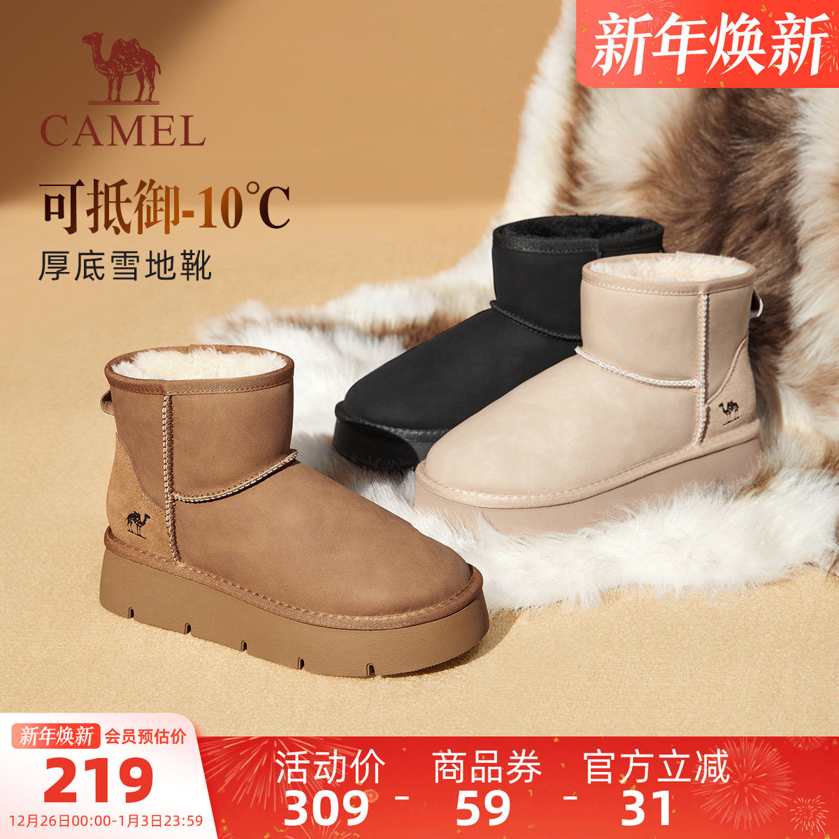 骆驼雪地靴女鞋2025冬季新款加绒保暖棉鞋女加厚东北厚底增高短靴
