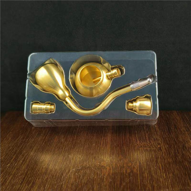 纯黄铜葫芦水烟壶老式铜水烟斗水斗壶复古烟嘴过滤器水壶烟斗中细