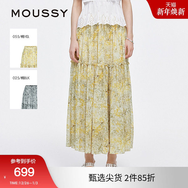 moussy 2025夏季新品南法度假风晕染碎花大摆半身裙028IAA31-1901