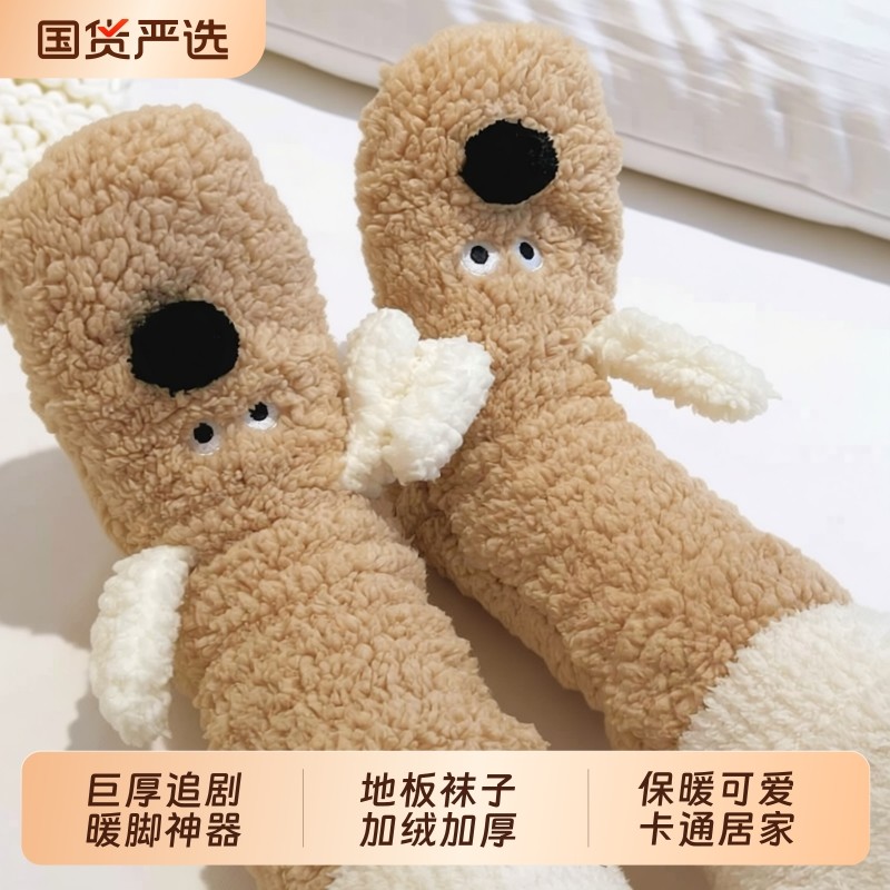 珊瑚绒袜子女冬季加厚加绒保暖地板袜睡眠月子袜秋冬新款睡觉袜子