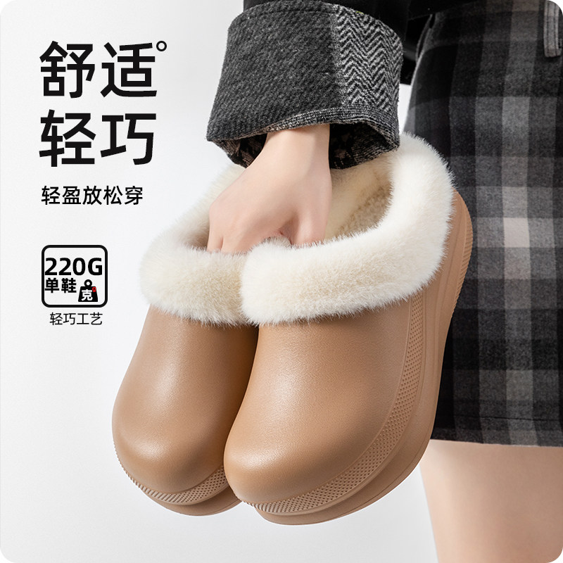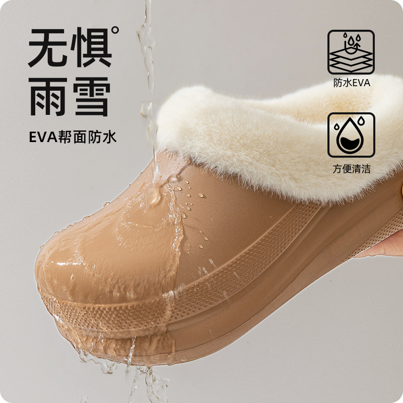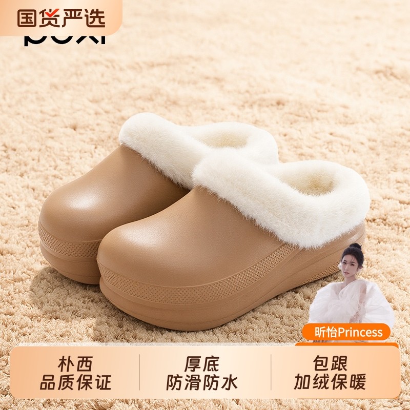 朴西棉拖鞋女士2025新款秋冬季居家室内加绒保暖厚底防水棉拖鞋女