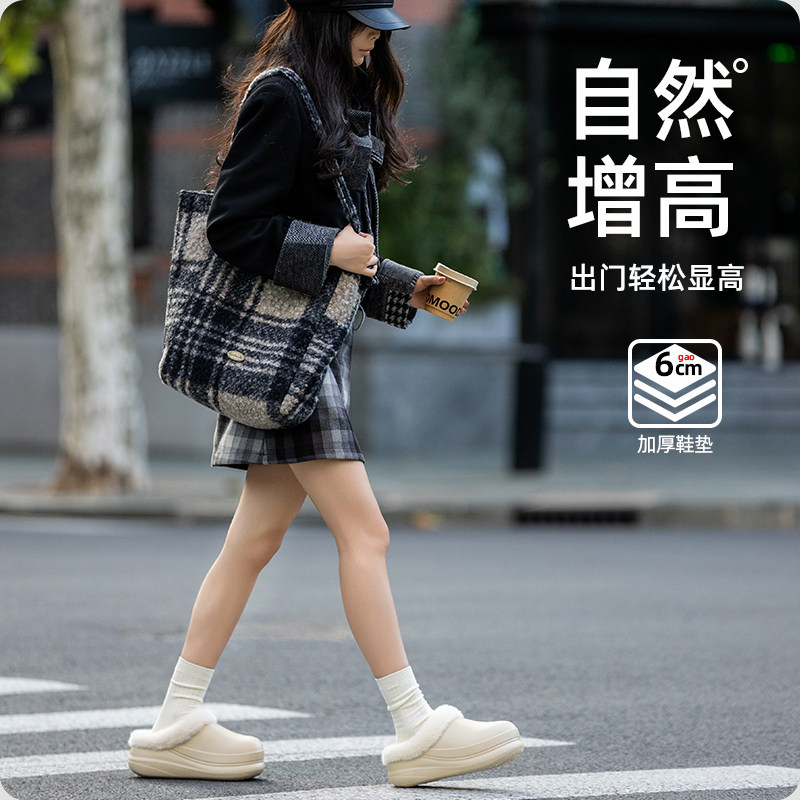 亚束棉拖鞋男士破茧外穿厚底增高情侣大码室内居家冬季保暖女新款