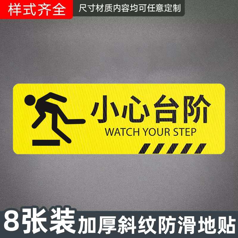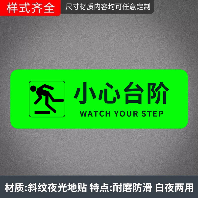 小心台阶地贴夜光小心地滑提示牌注意台阶提示贴纸防水小心台阶警示牌上下楼梯反光地标指示自发光安全标识牌