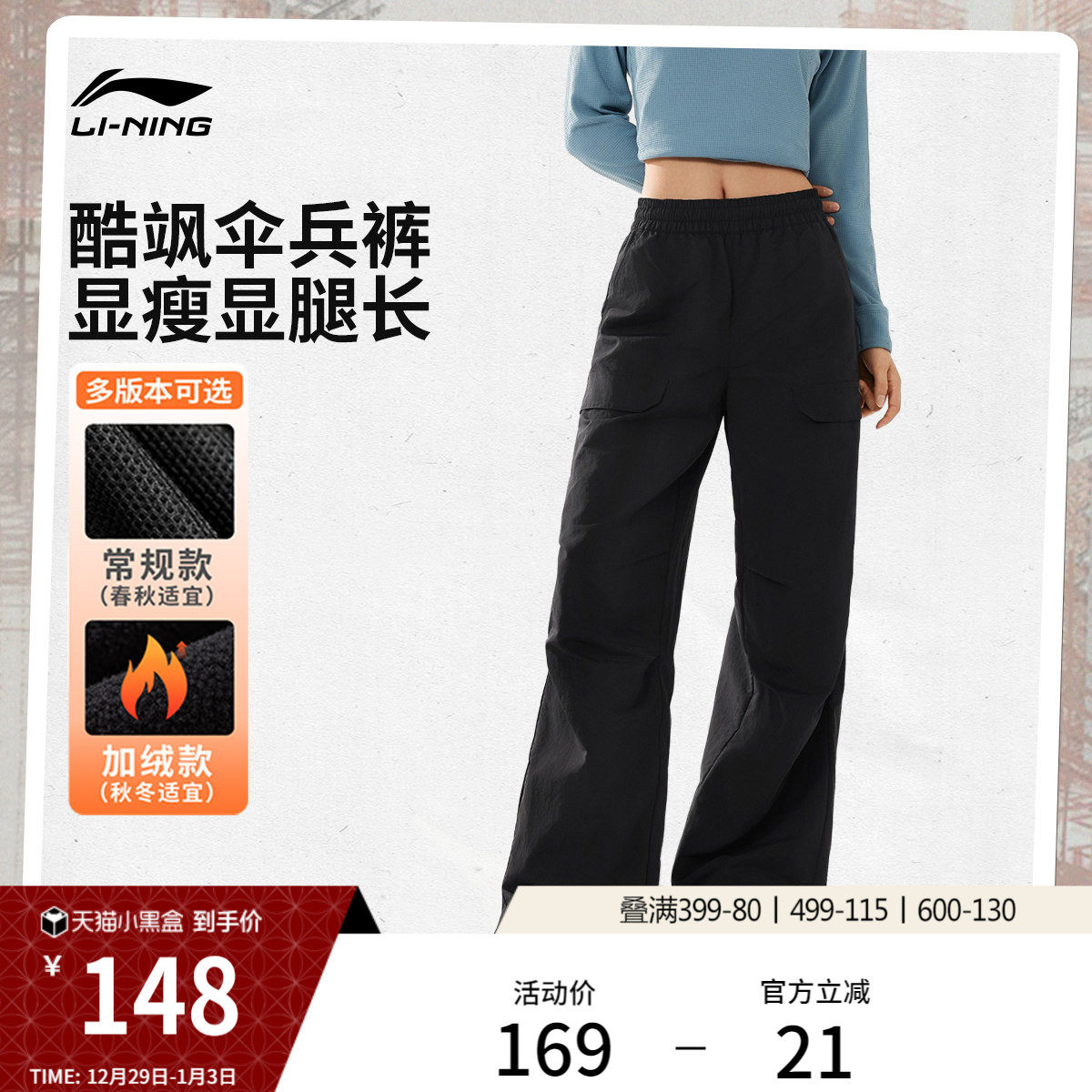 李宁C位裤丨直筒工装裤女2025新款休闲伞兵裤秋冬加绒运动长裤女