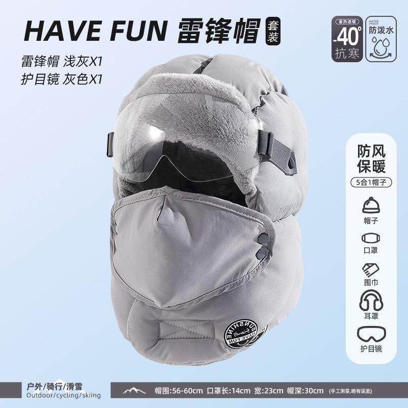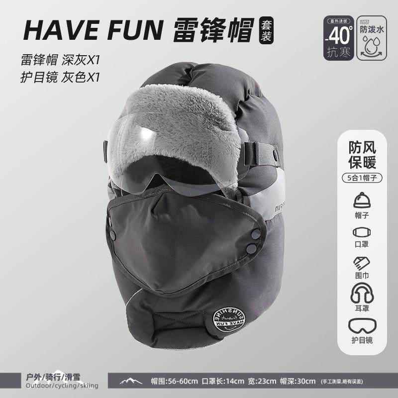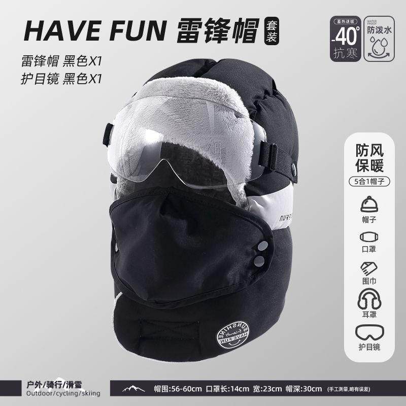 男士冬季帽子护耳骑行雷锋面罩加厚棉帽保暖防寒加绒滑雪防风御寒