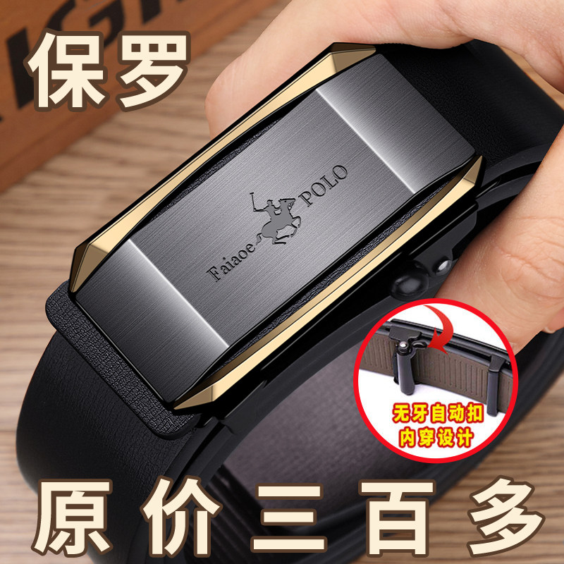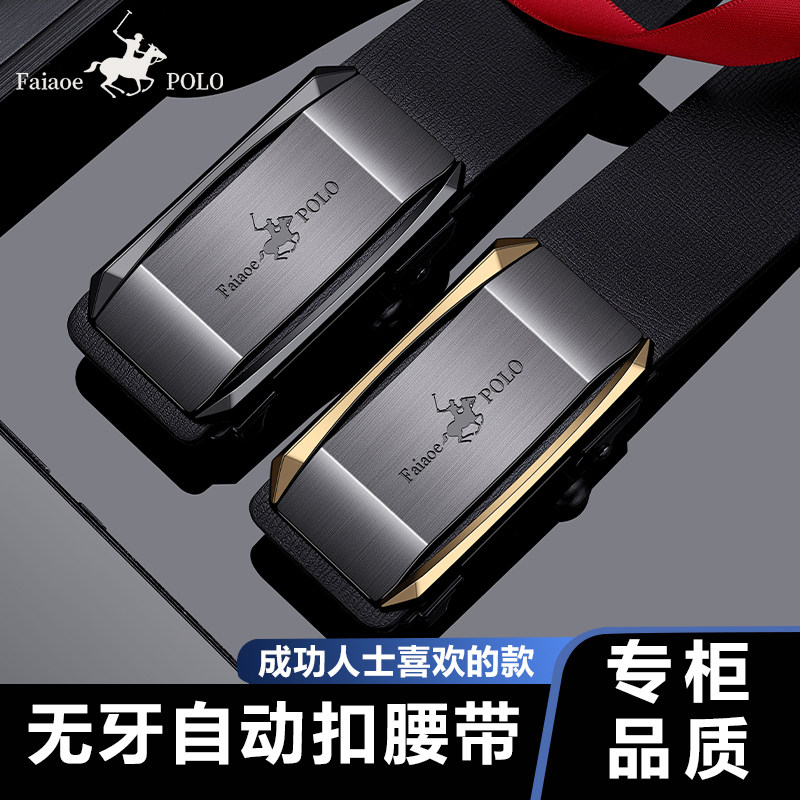 专柜正品高档商务休闲皮带轻奢男士真皮腰带青年自动扣纯牛皮裤带