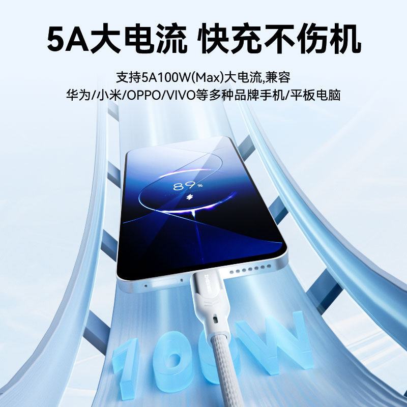 倍思适用华为充电线typec安卓数据线100w超级快充mate80器tpyec线Pura70pro车载6A手机typc线usb转C闪充tapyc