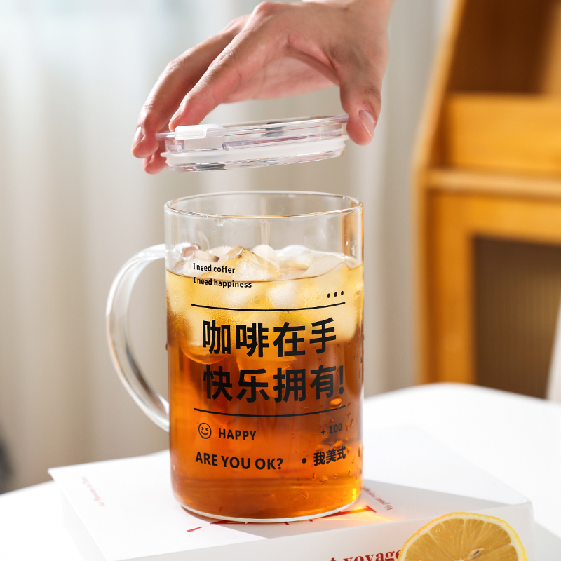 ins玻璃杯带把手马克杯高颜值喝水杯子家用早餐牛奶杯冷萃咖啡杯