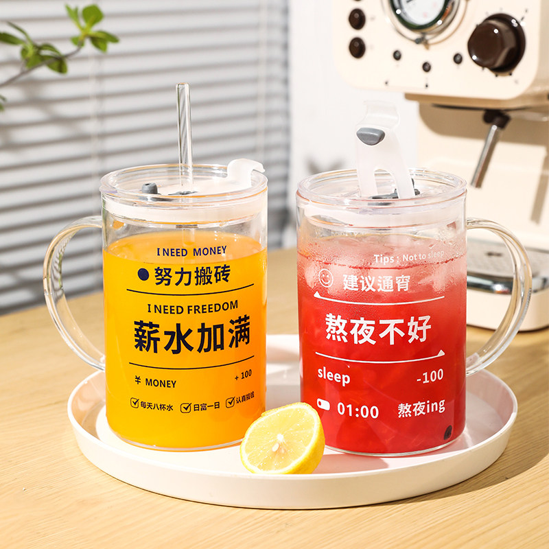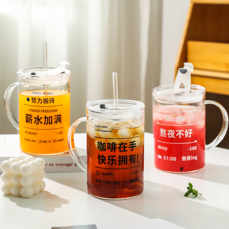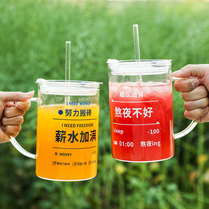 舍里大容量玻璃杯女生高颜值情侣水杯家用吸管杯办公室带盖咖啡杯