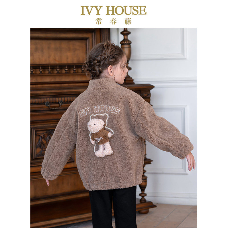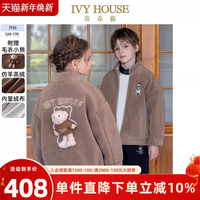 IVY HOUSE常春藤儿童装男女童冬季新款 仿羊羔绒夹里外套保暖亲子