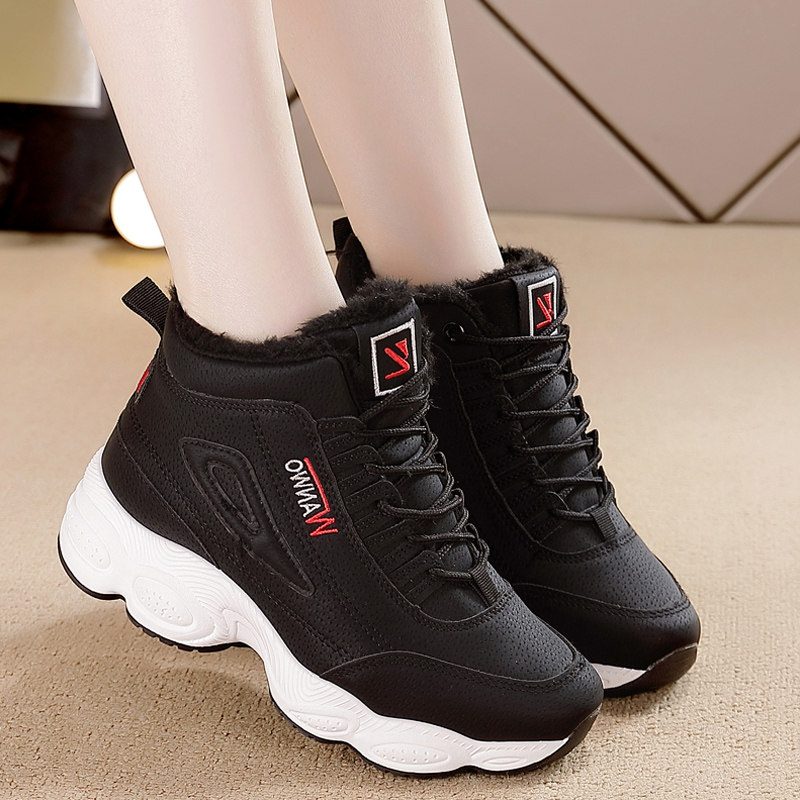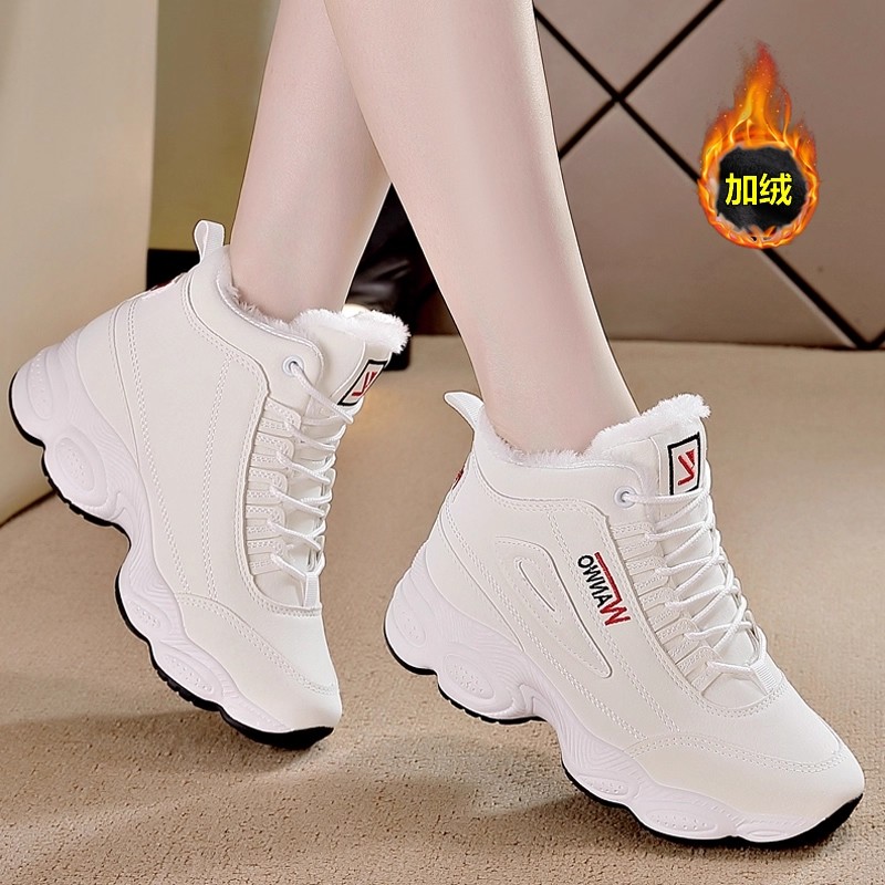 高帮小白鞋女2025冬季加绒松糕厚底回力运动老爹鞋子防滑保暖棉鞋
