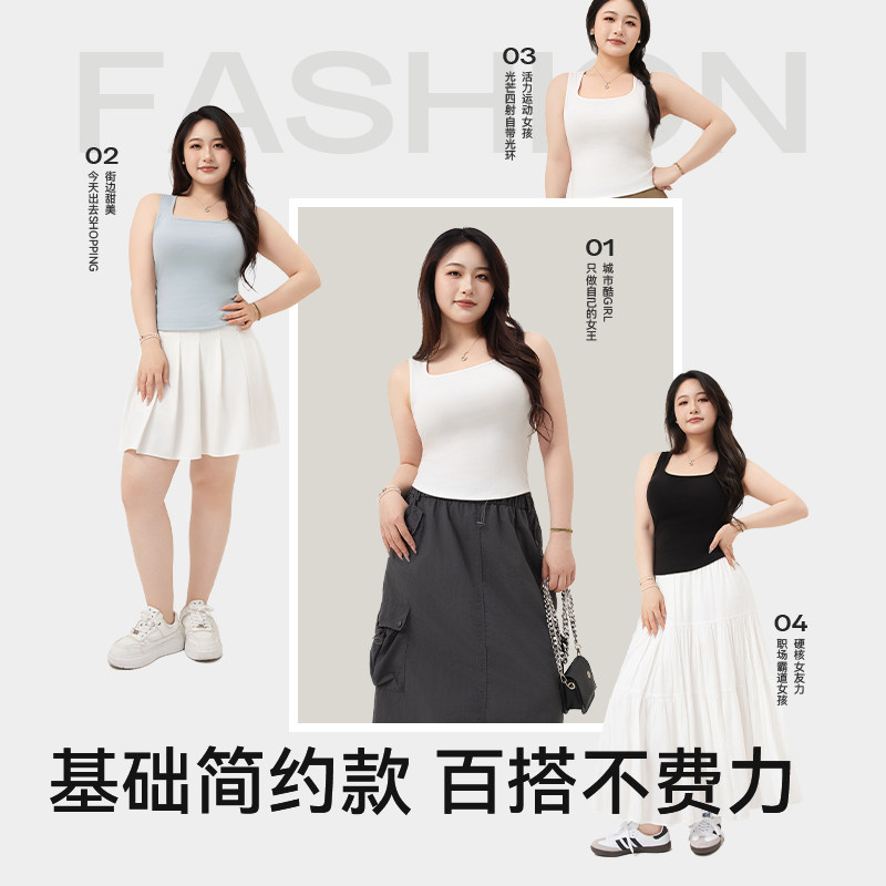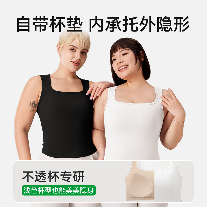 大码大胸吊带背心女带胸垫显瘦美背内衣内搭夏季薄胖mm可外穿上衣