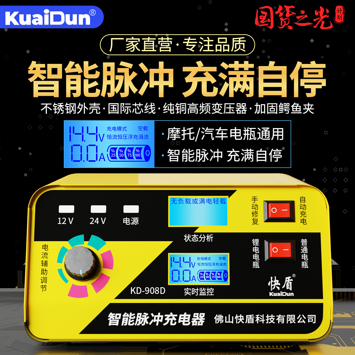 汽车电瓶充电器12v24v伏通用脉冲修复液晶显示摩托车蓄电池充电器