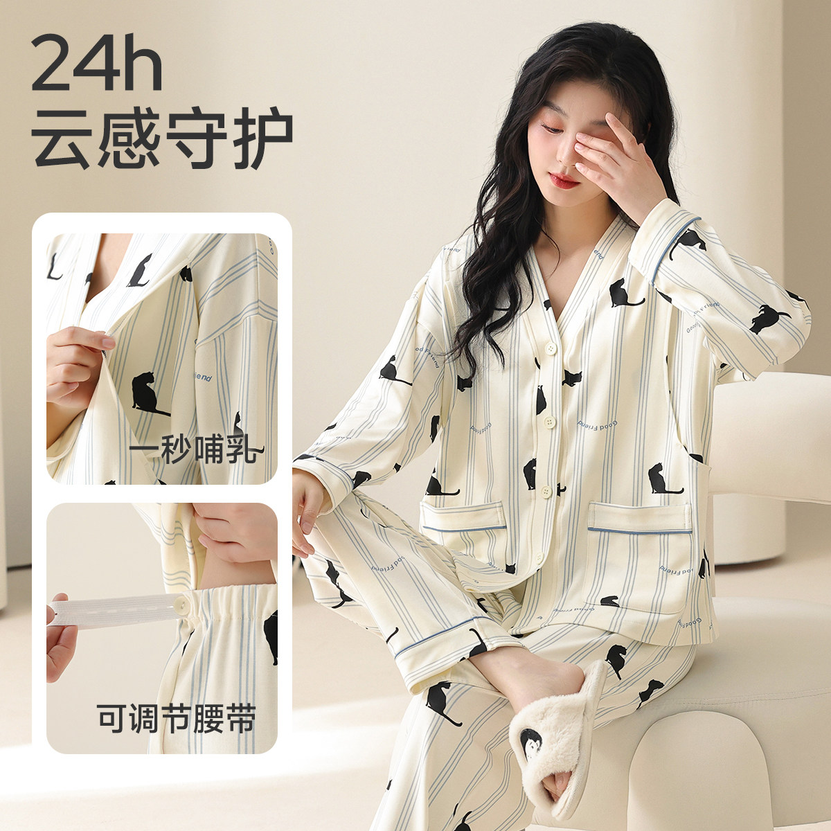 带胸垫奶香风纯棉月子服春秋季产后产妇孕妇睡衣秋冬款哺乳喂奶衣