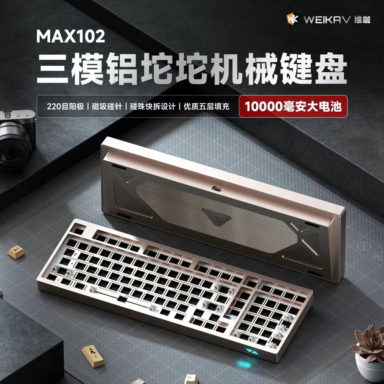 维咖MAX102三模机械键盘铝坨蓝牙无线2.4G套件RGB游戏1K游戏打瓦