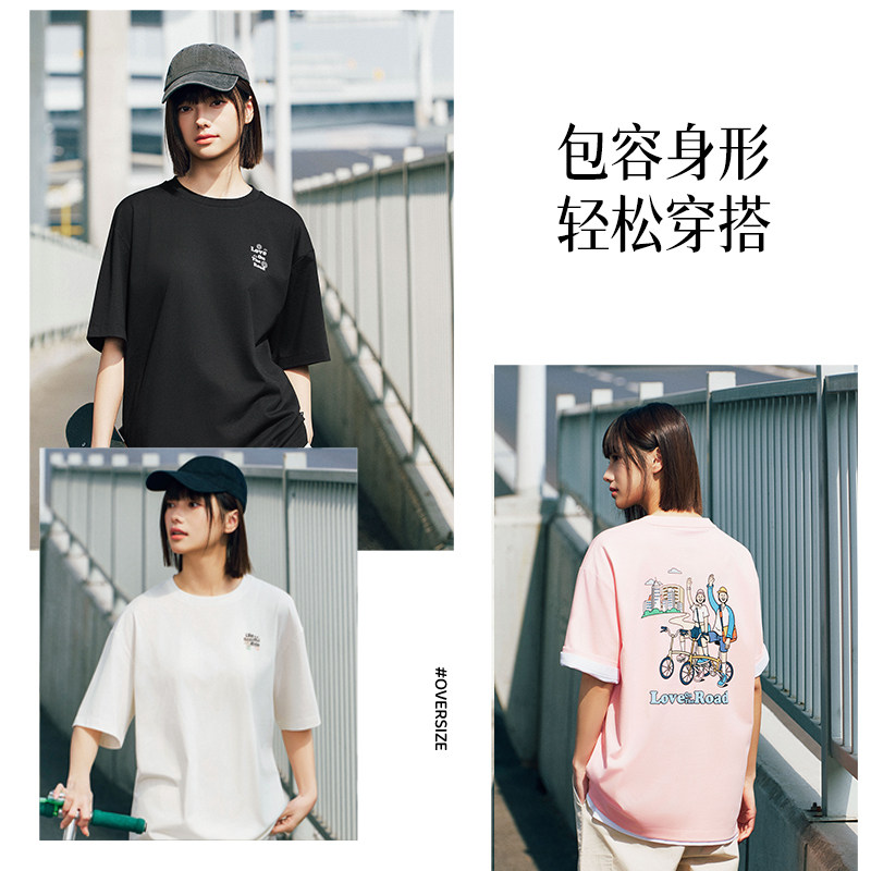 骆驼短袖夏日纯棉T神运动T恤女美式宽松半袖情侣款复古休闲上衣