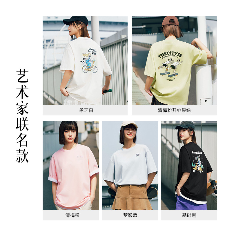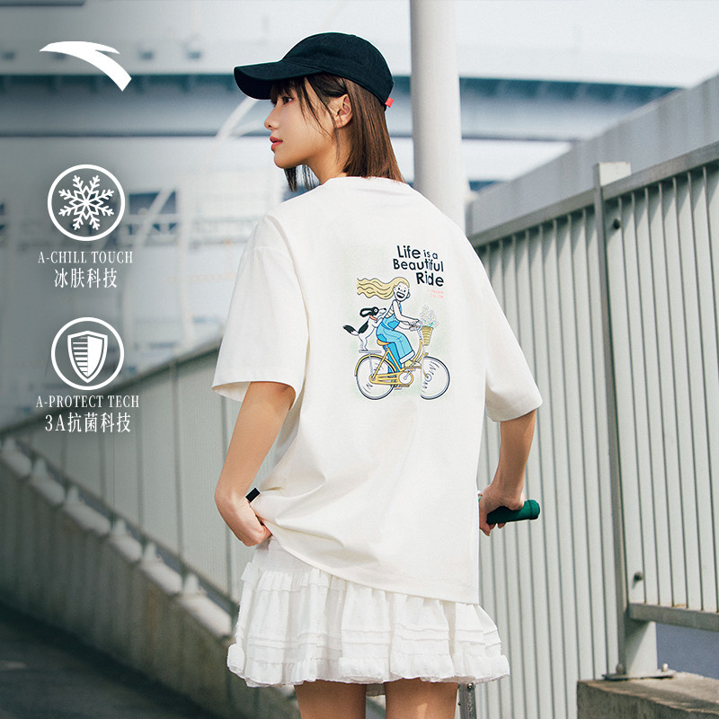 安踏情侣多彩T宽松短袖男女同款夏季休闲t恤半袖抗菌透气运动上衣