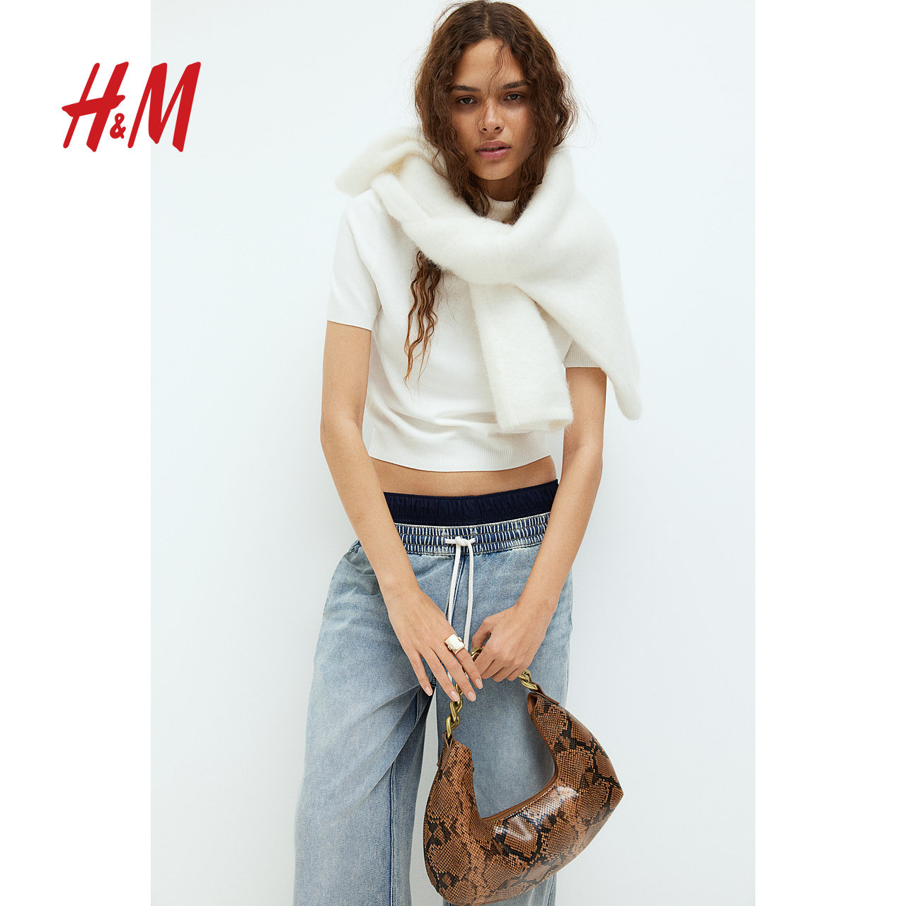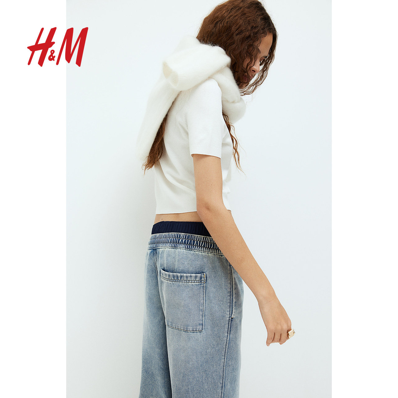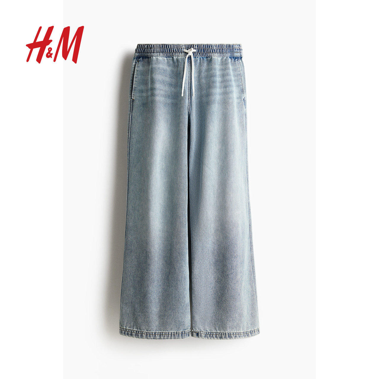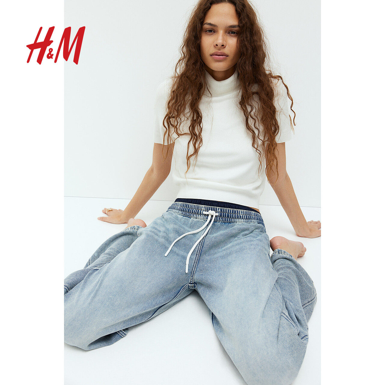 HM女装牛仔裤2025冬季新款松紧腰直筒潮流休闲牛仔长裤1237416
