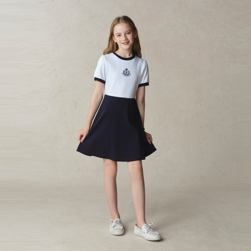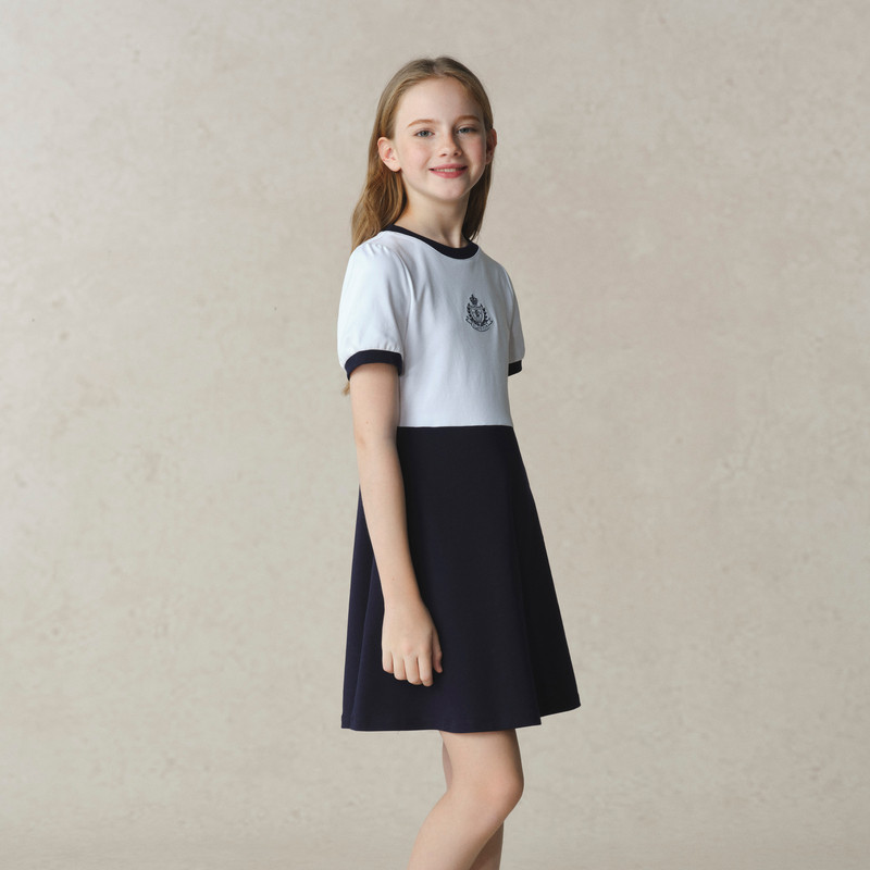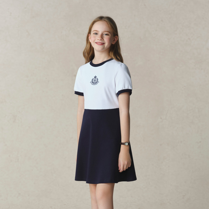 【云柔棉】eland kids衣恋童装女童连衣裙25年夏季新圆领拼接裙子