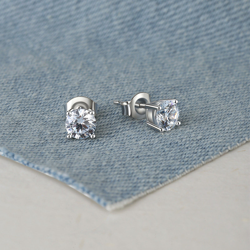 999纯银耳钉女养耳洞耳骨钉小众高级感锆石耳蜗钉水钻耳环银耳饰