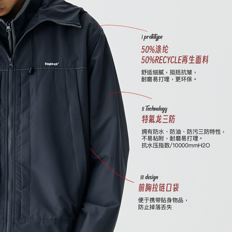 【清仓】BENPANDA特氟龙三防冲锋衣户外机能防泼水连帽夹克外套男