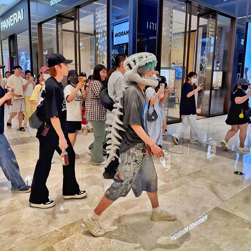 恐龙骨架头套毛绒玩具鹿晗同款儿童外骨骼玩偶生日礼物送女生动物