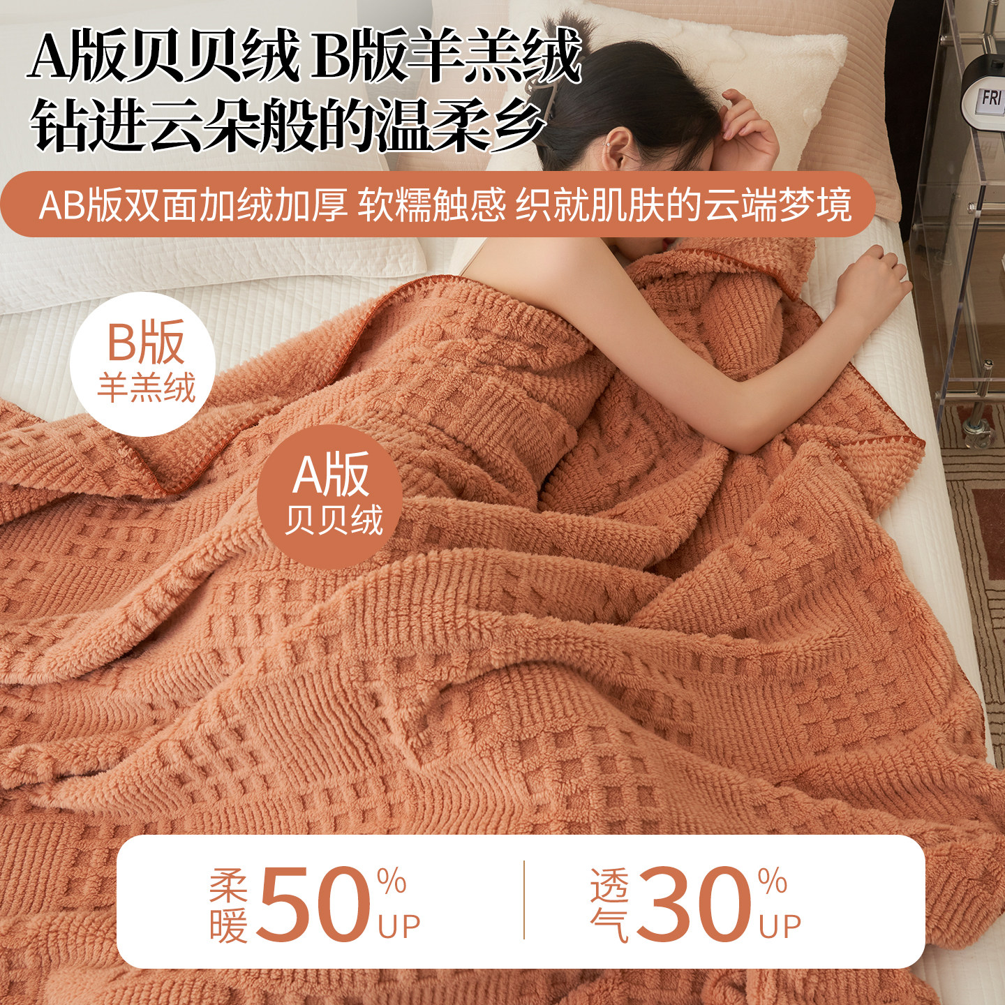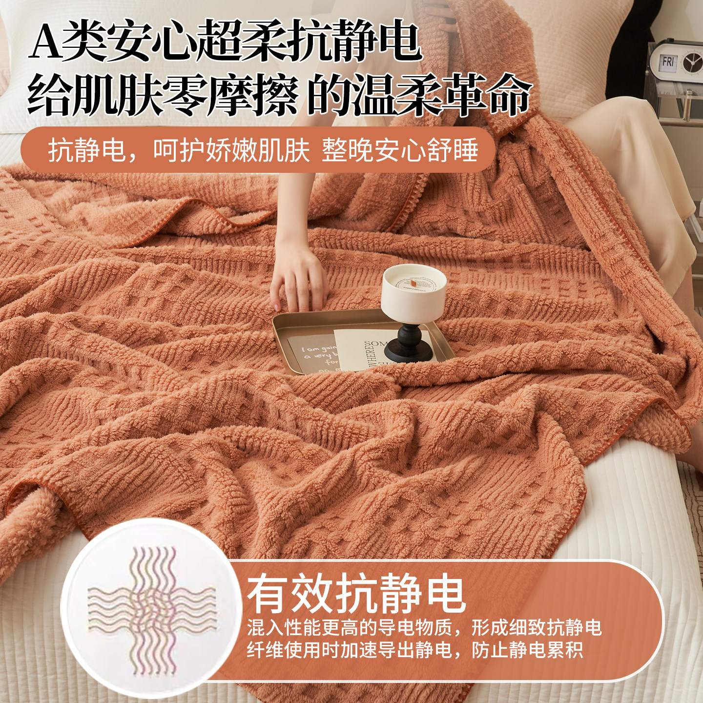 华夫格提花毛毯 蓬松、软糯、不掉毛无静电