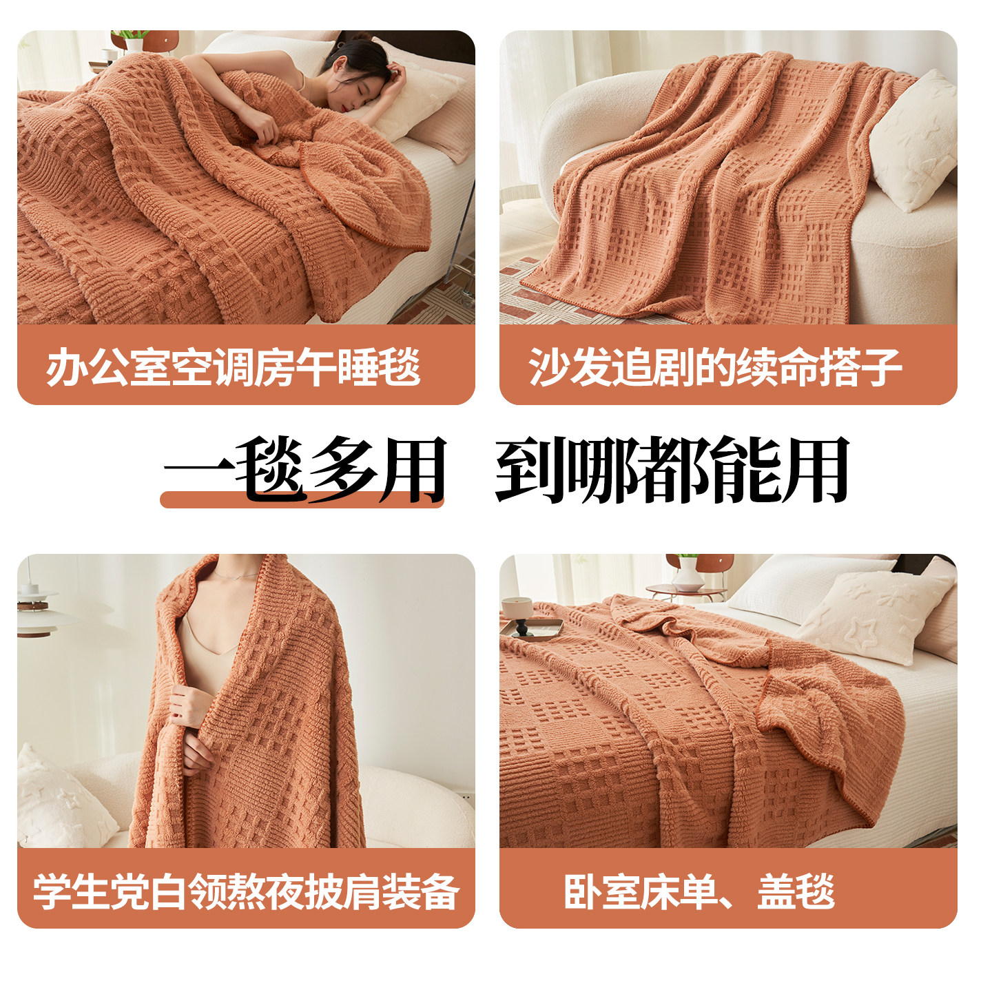 2025新款华夫格毛毯加厚冬季盖毯办公室午睡毯沙发毯子披肩毛巾被