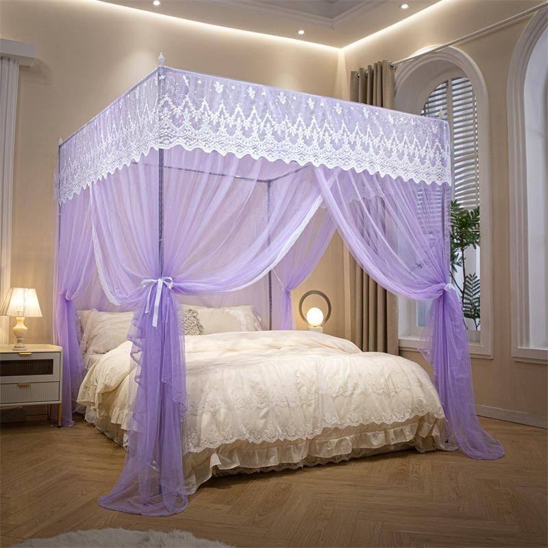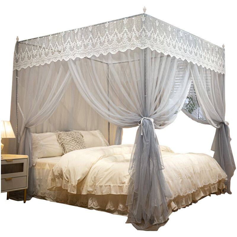 2024新款蚊帐家用卧室三开门老式落地纹账2023支架杆加厚加密防蚊