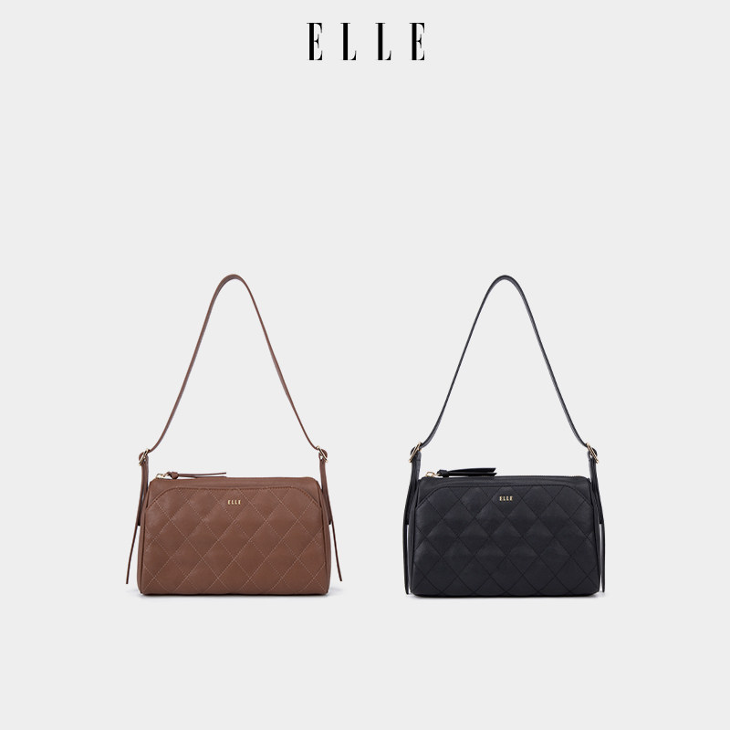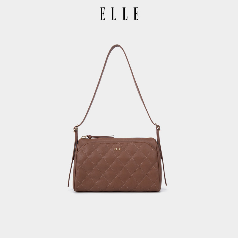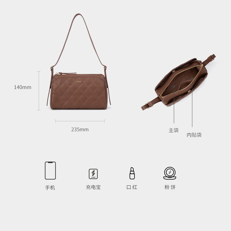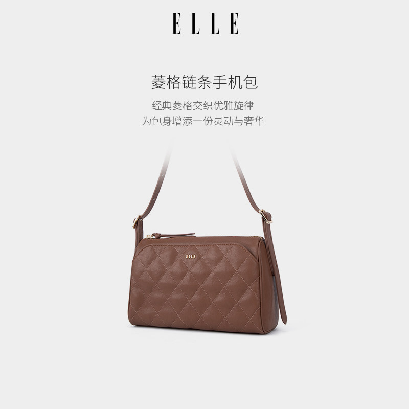 ELLE小众设计真皮绗缝手机包女菱格纹单肩斜挎包高级感
