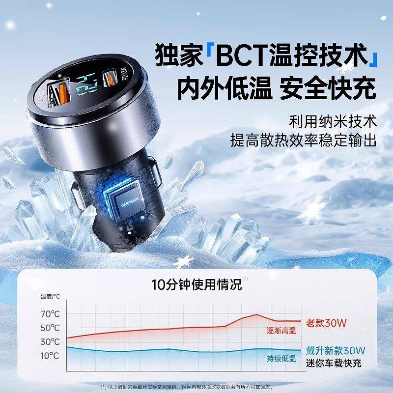 倍思车载充电器快充一拖二车充自带PD双线汽车点烟器适用苹果华为