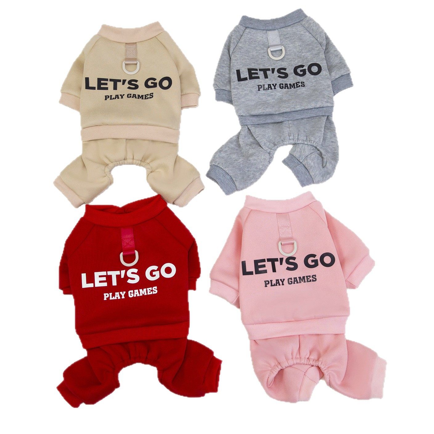 秋冬新款宠物衣服绒衣小狗狗衣服四脚衣宠物服饰红色粉色四腿灰色