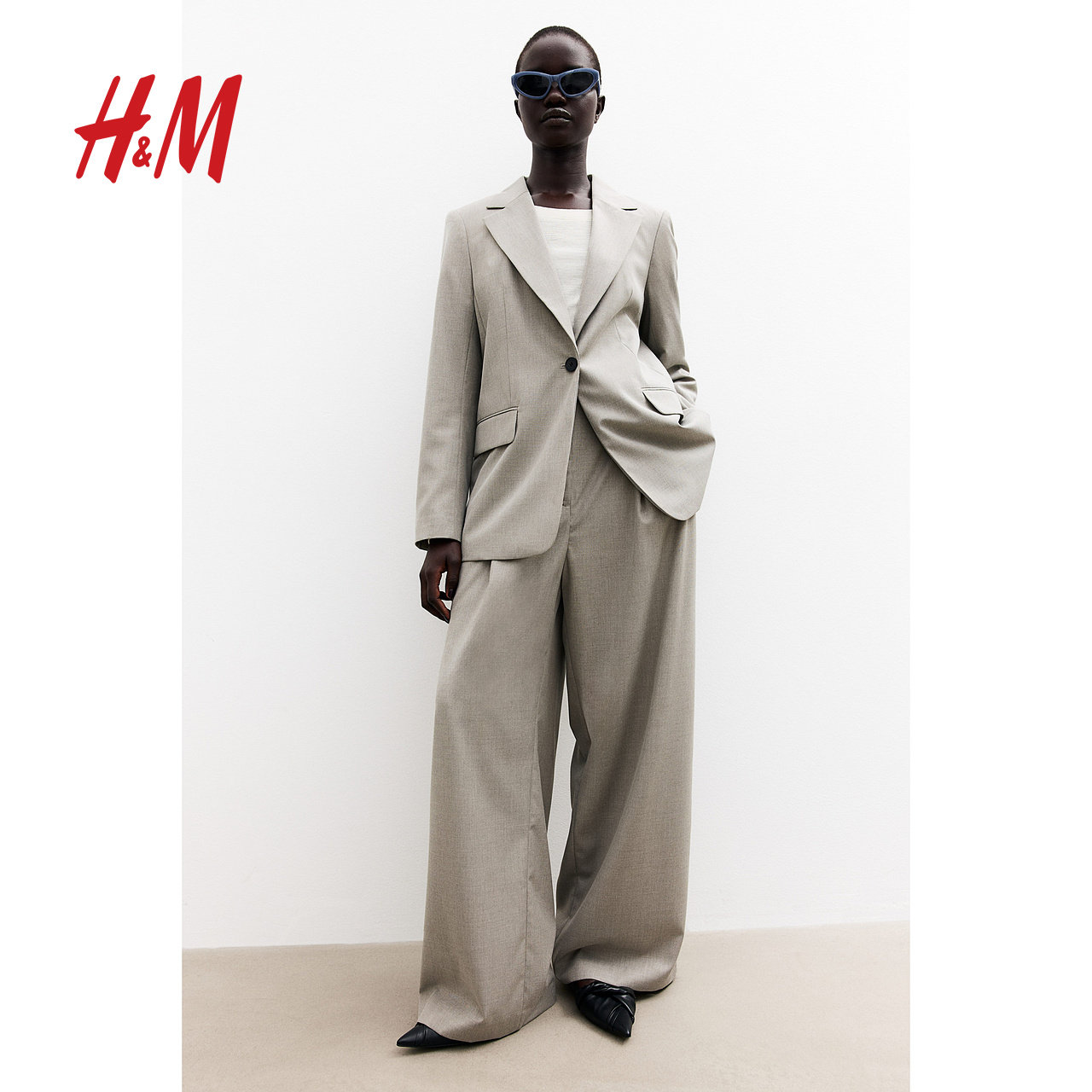 HM女装冬季西装时尚气质通勤休闲单排扣上衣外套1209691
