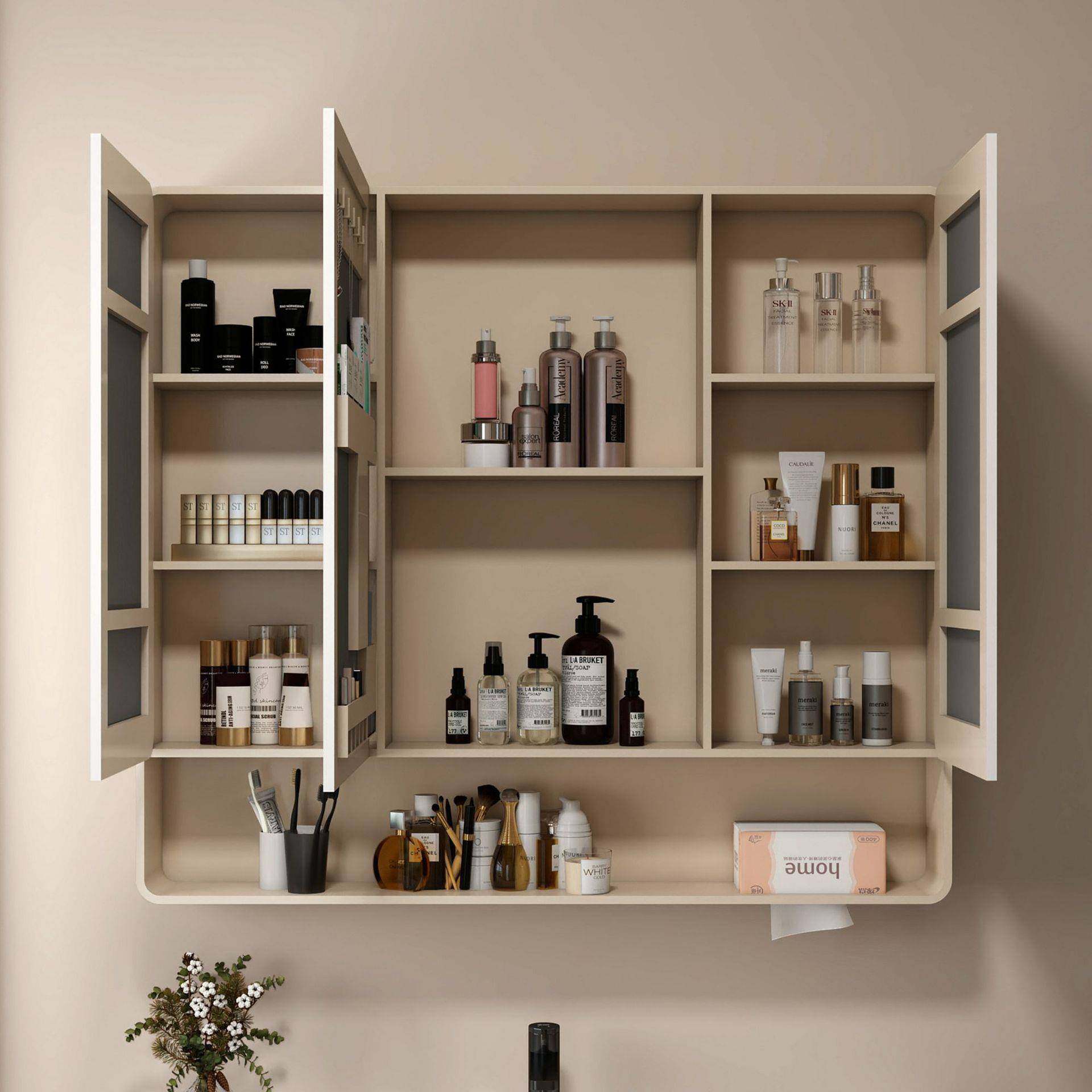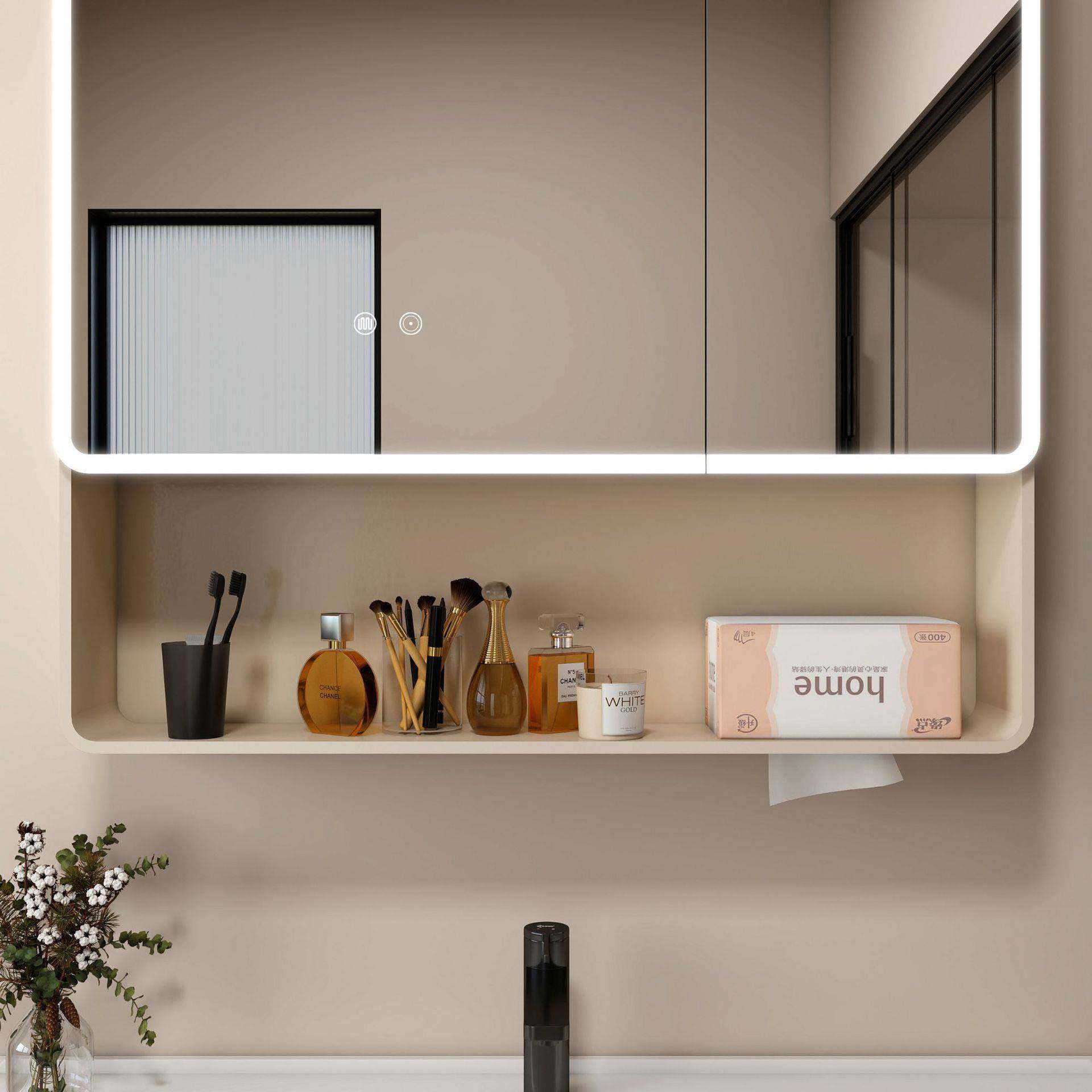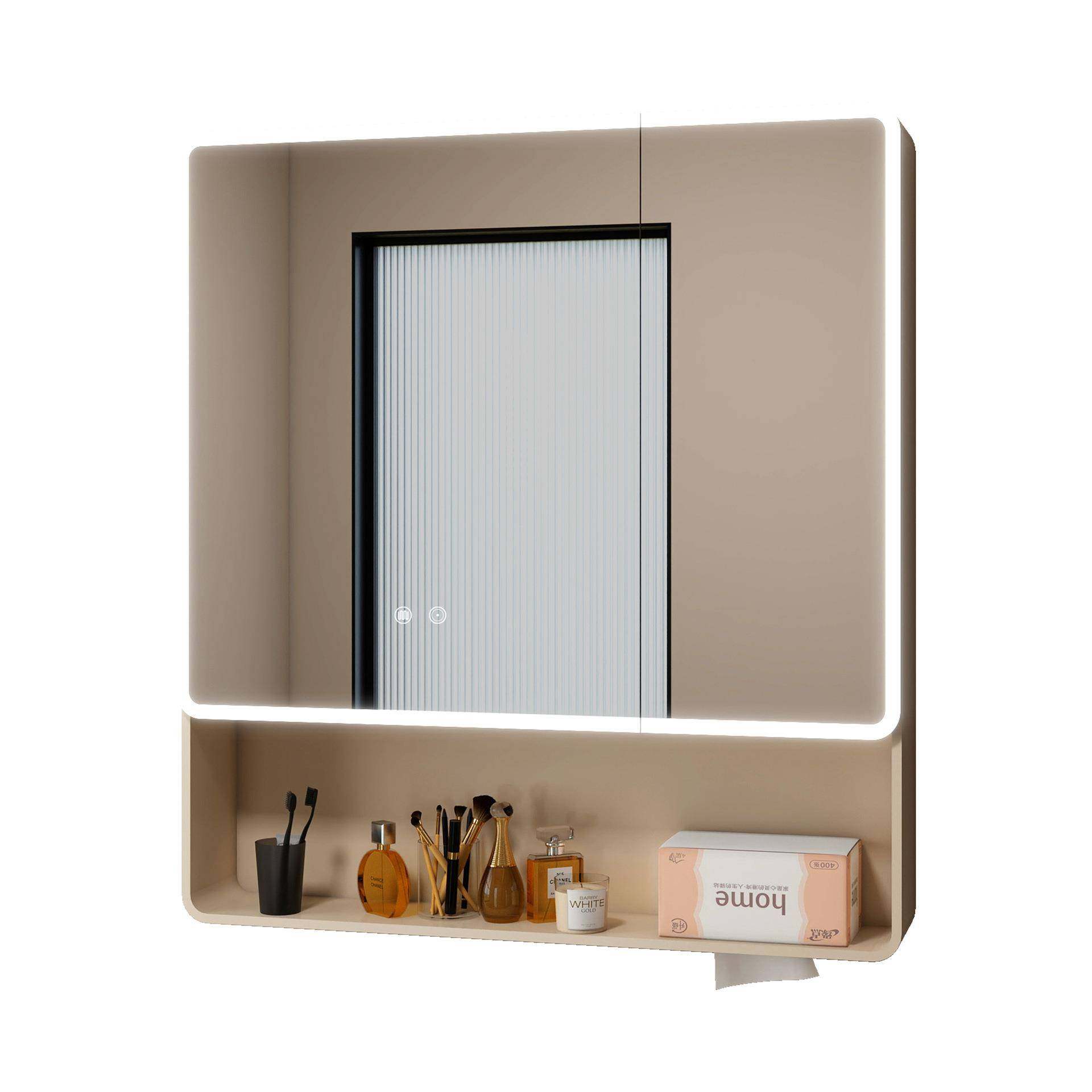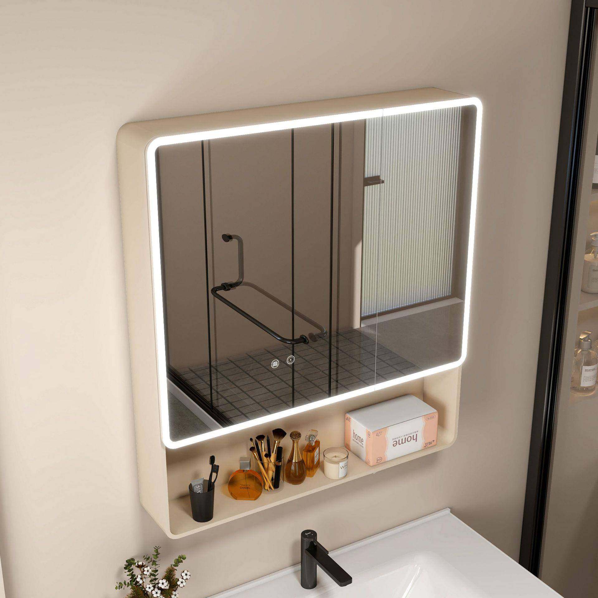 太空铝加高加厚圆弧除雾浴室镜柜卫生间壁挂智能镜子带灯储物柜