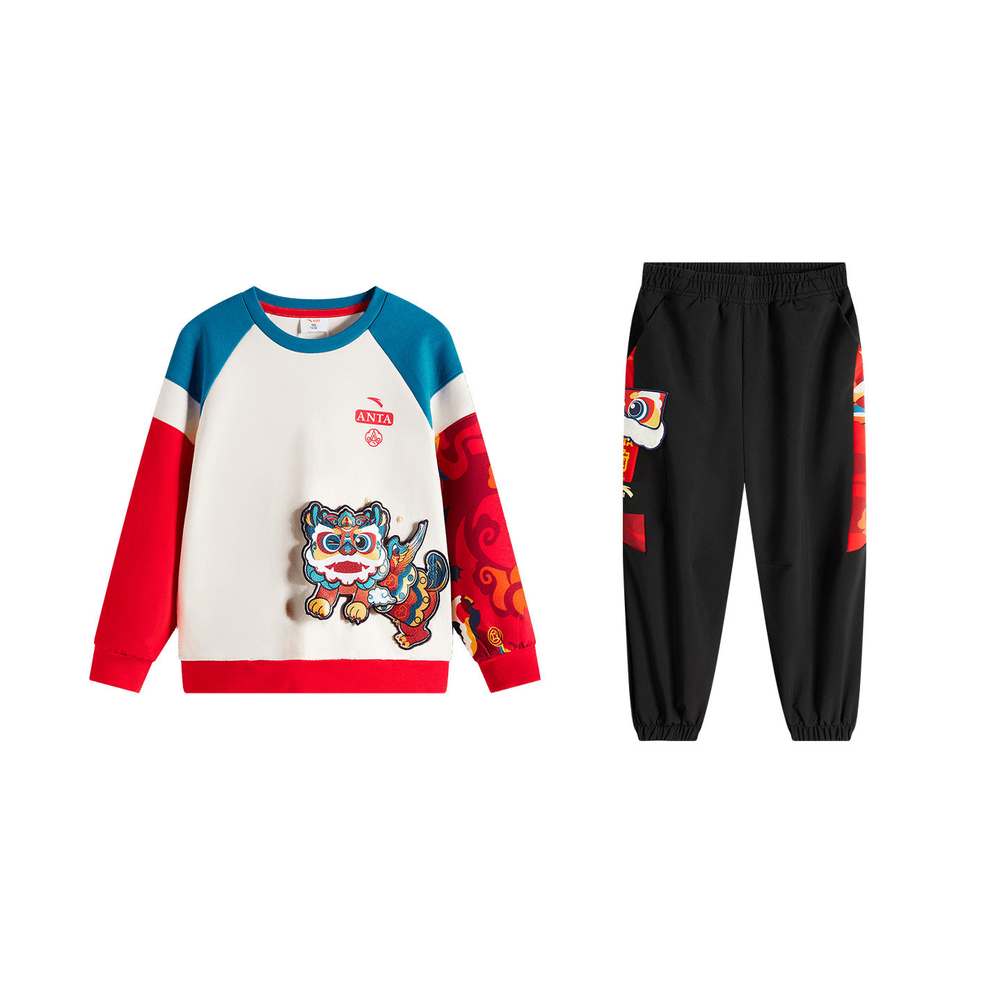 安踏儿童男小童套装2025秋冬新款舒适保暖儿童可爱卫衣卫裤两件套