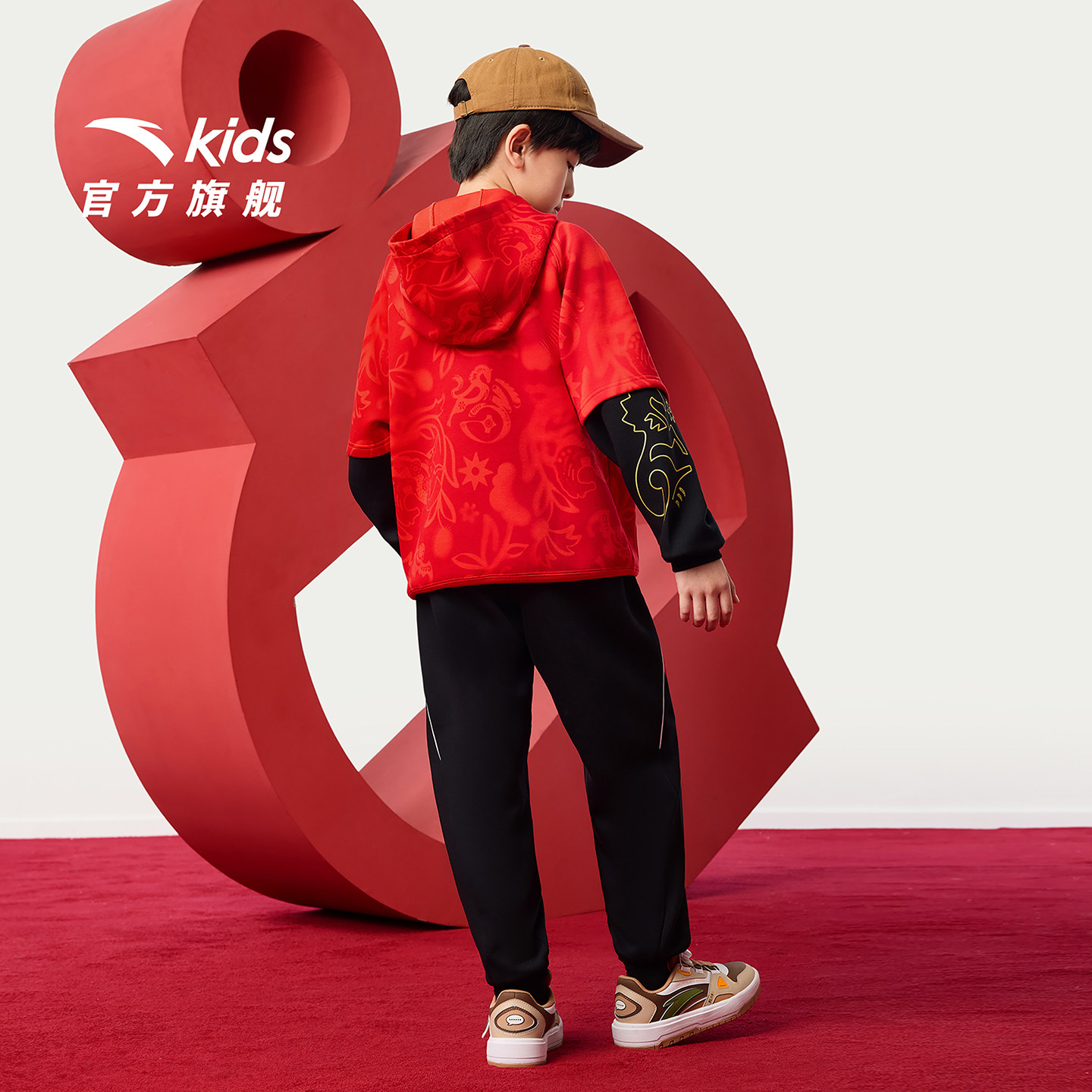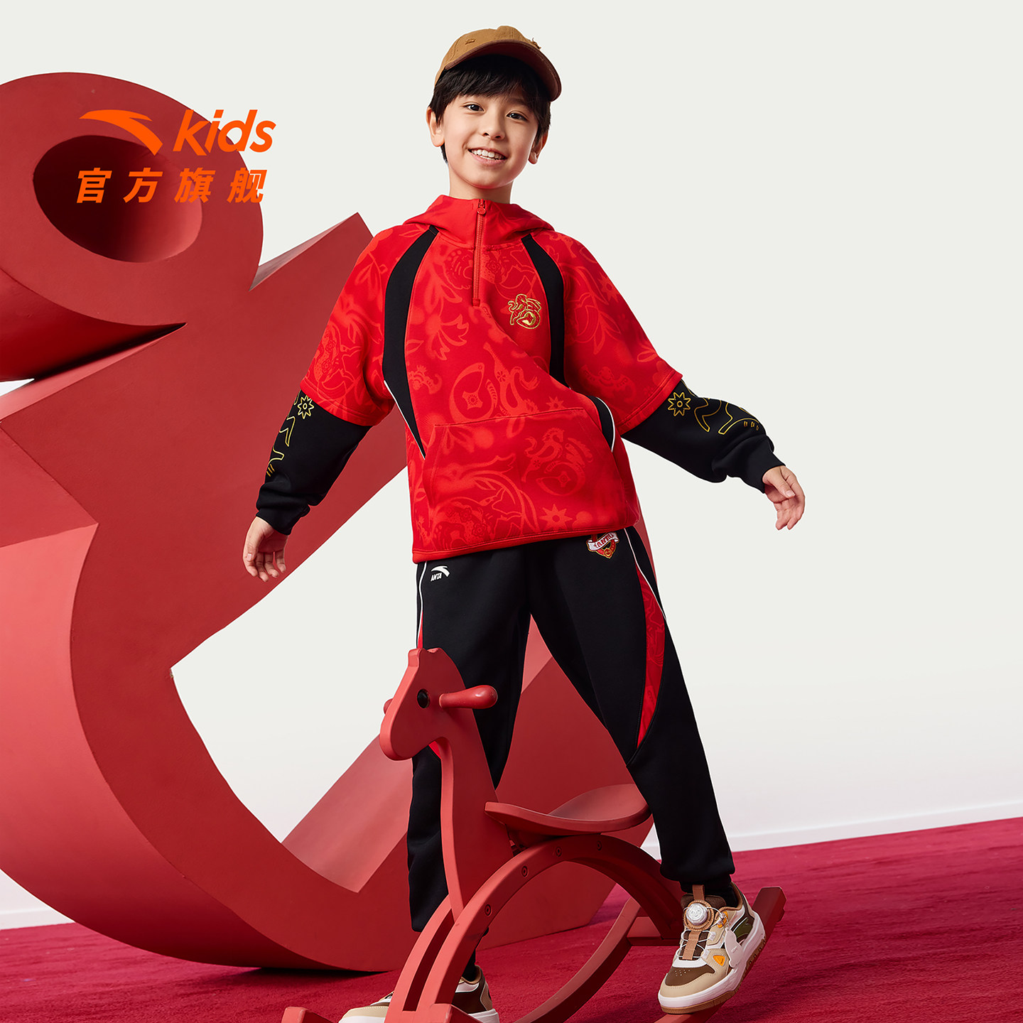 【马年红色新年】安踏男童套装2026款连帽卫衣卫裤拜年时尚两件套