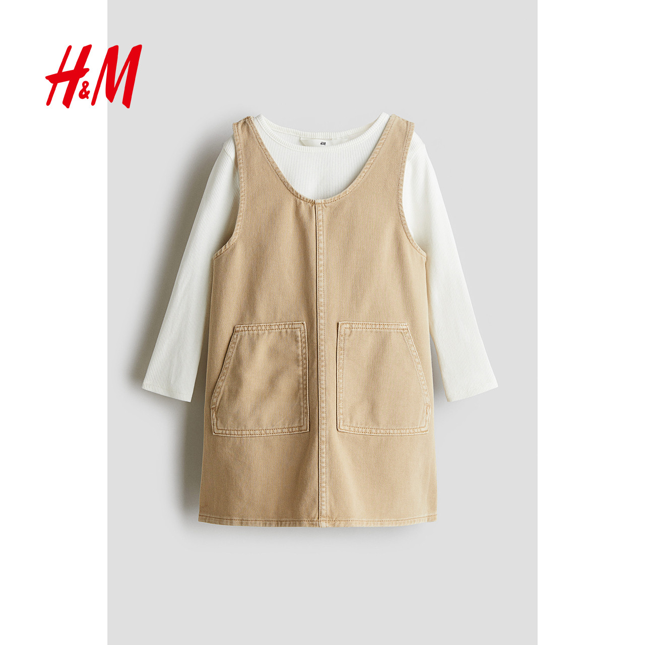 HM童装儿童女童套装2件式2025冬季新款休闲连衣裙长袖上衣1262603