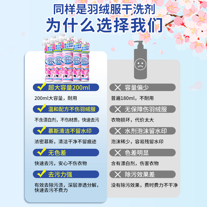 沫檬羽绒服清洗剂免水洗专用白色羽绒服干洗剂去污渍清洁神器蓬松