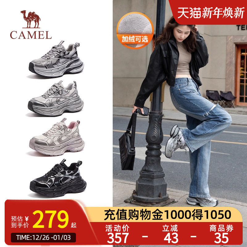 Camel骆驼老爹鞋银月女鞋秋冬新款复古运动鞋加绒厚底增高休闲鞋