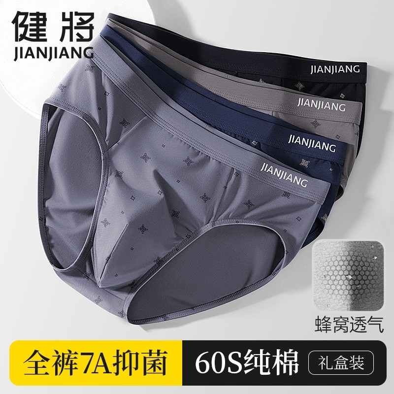 健将男士内裤纯棉抗菌三角裤男款中腰透气底裤潮流透气男生短裤头