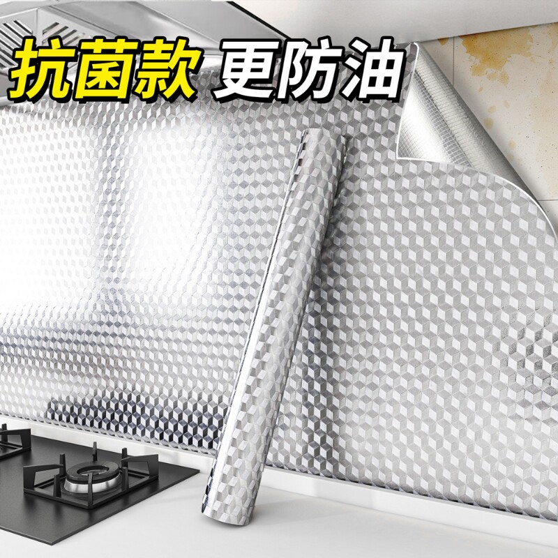 厨房防油贴纸防火耐高温灶台防水墙壁纸加厚自粘橱柜防潮铝箔锡纸